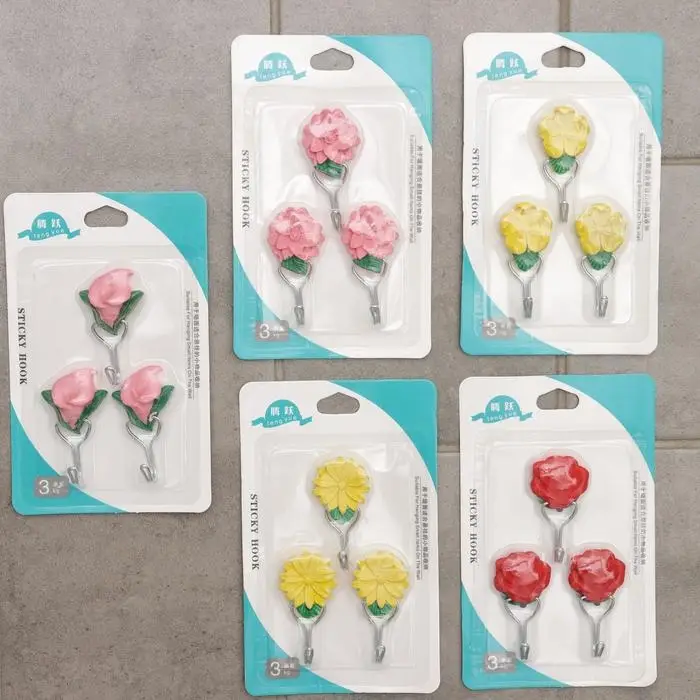 Крючок на липучке «Цветочек», 3 шт, цвет МИКС