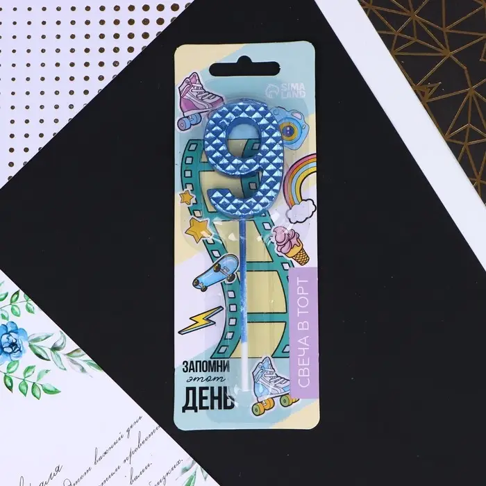 Свеча для торта, цифра «9», синяя, 4 х 13 см