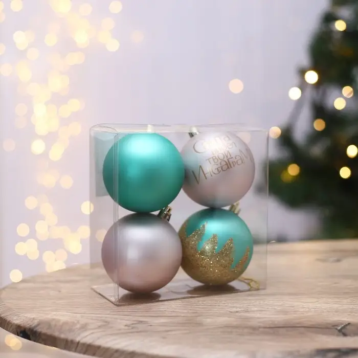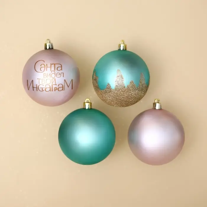 Новогодние шары ёлочные «Санта видел твой Инстаграм», пластик, d=8, 4 шт., цвет розовый, тиффани