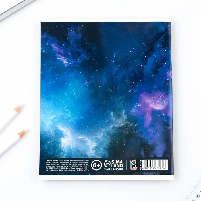 Тетрадь в линейку, предметная, 48 л.,на скрепке, А5 «КОСМОС. Русский язык»