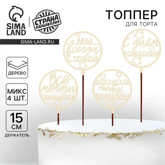 Топпер для торта «С Днём Рождения», пожелания, ассорти