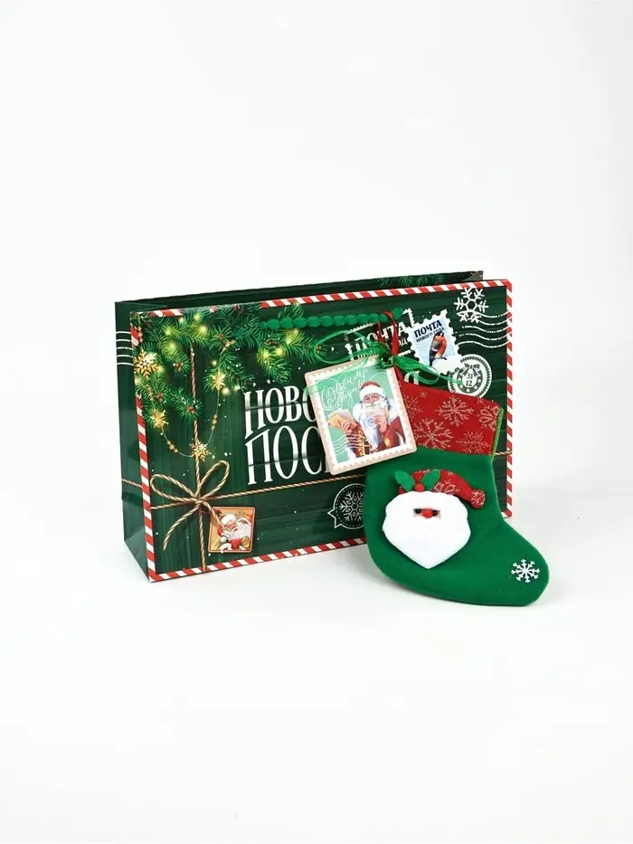 Пакет подарочный «Новогодний подарок», с носком для подарков, 25,5 × 30 × 11 см