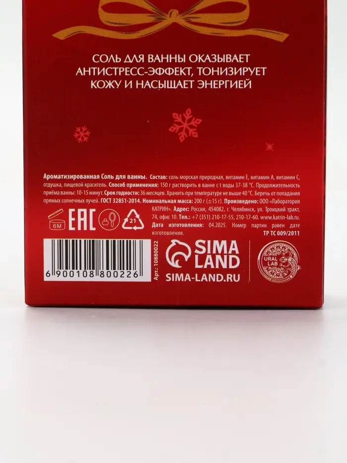 Соль для ванны, аромат пряный глинтвейн, 200 г, URAL LAB