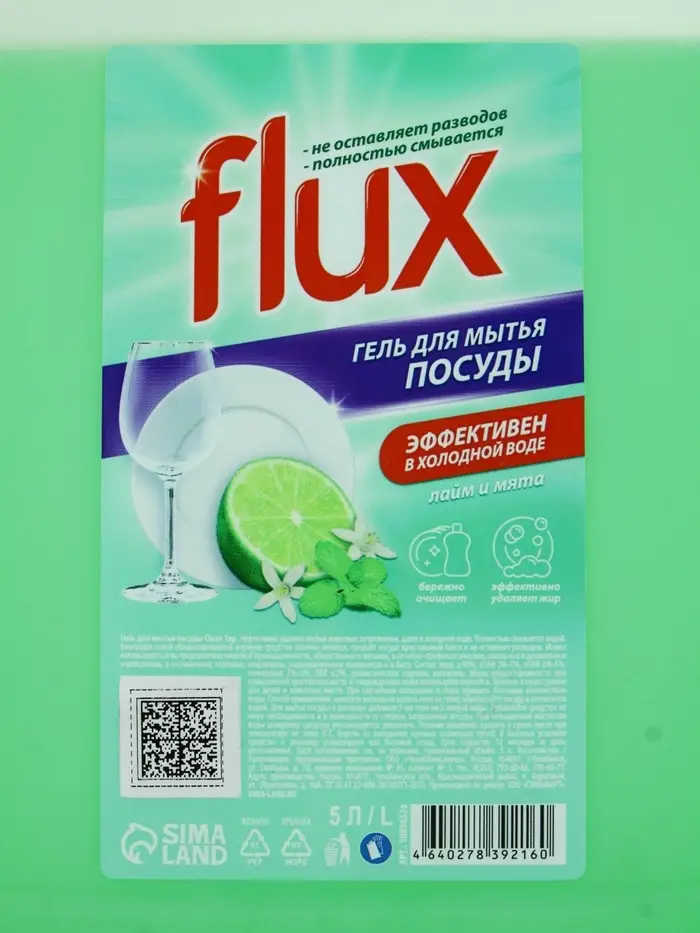 Гель для мытья посуды «Лайм и мята», 5 л, FLUX