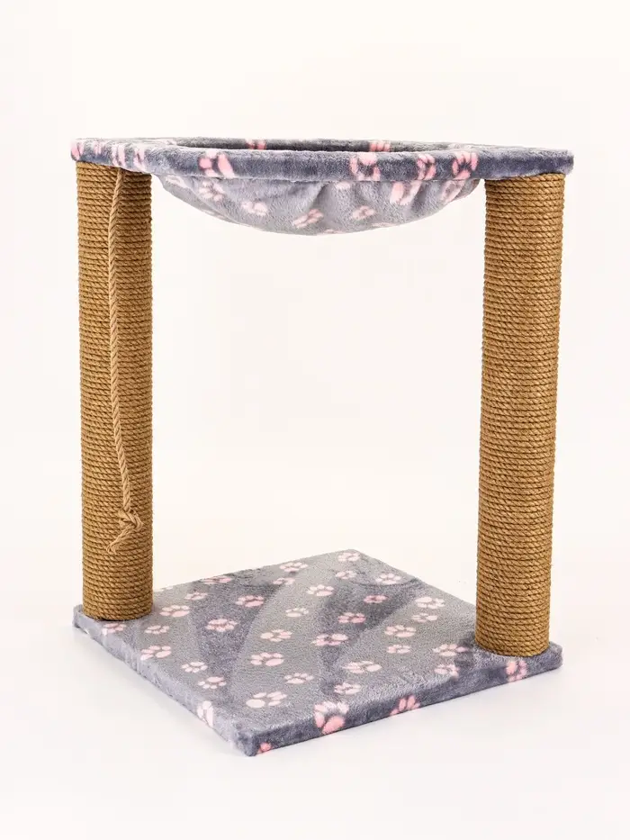 Когтеточка Зверьё Моё c гамаком, 40 х 40 х 50 см, джут, розовая пантера