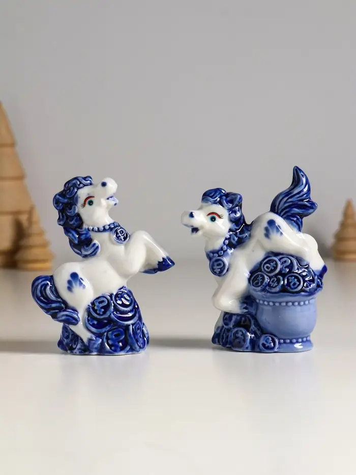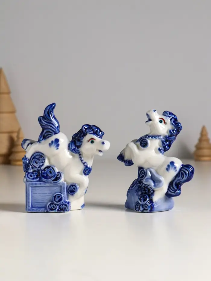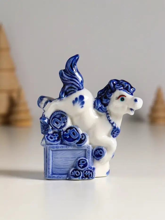 Сувенир керамика "Лошадка денежная" бело-синий МИКС 7,1х3,1х9 см