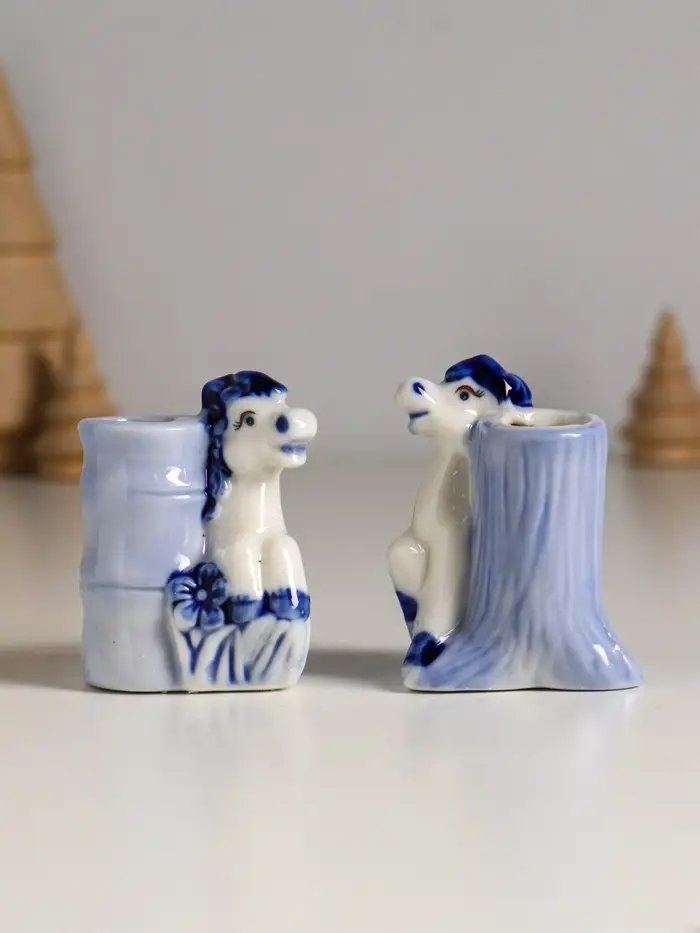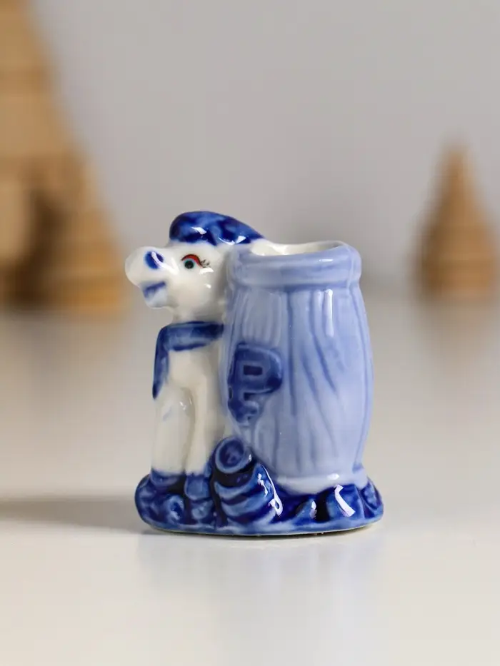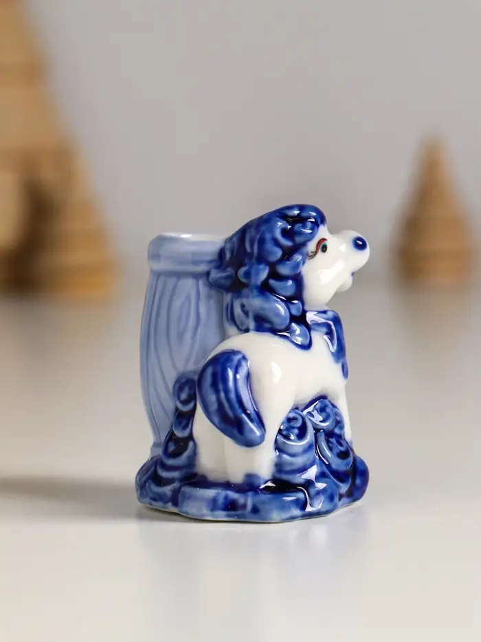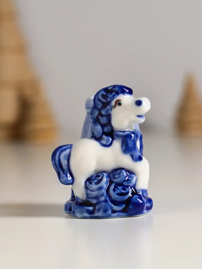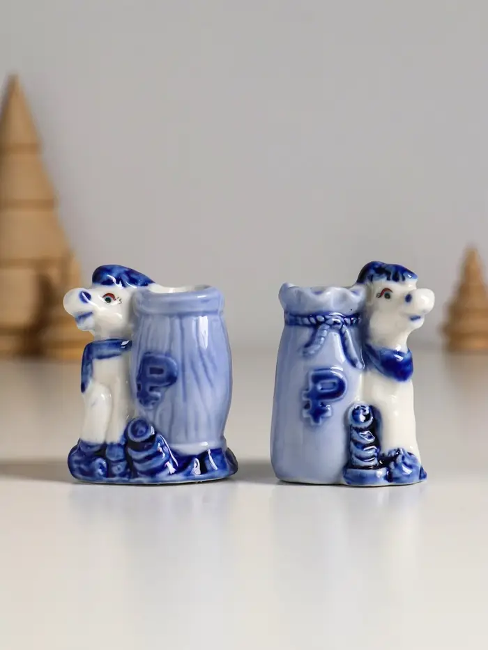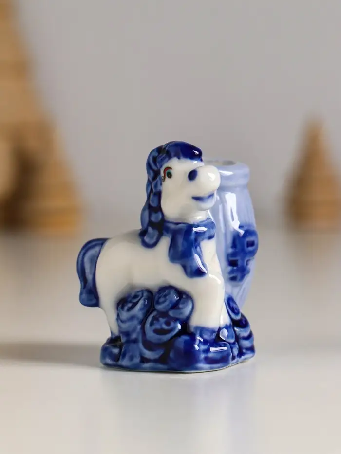Сувенир керамика подставка "Лошадка с мешком/бочкой монет" бело-синий МИКС 4,2х4х5,5 см