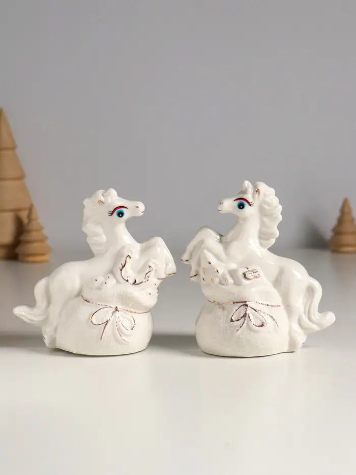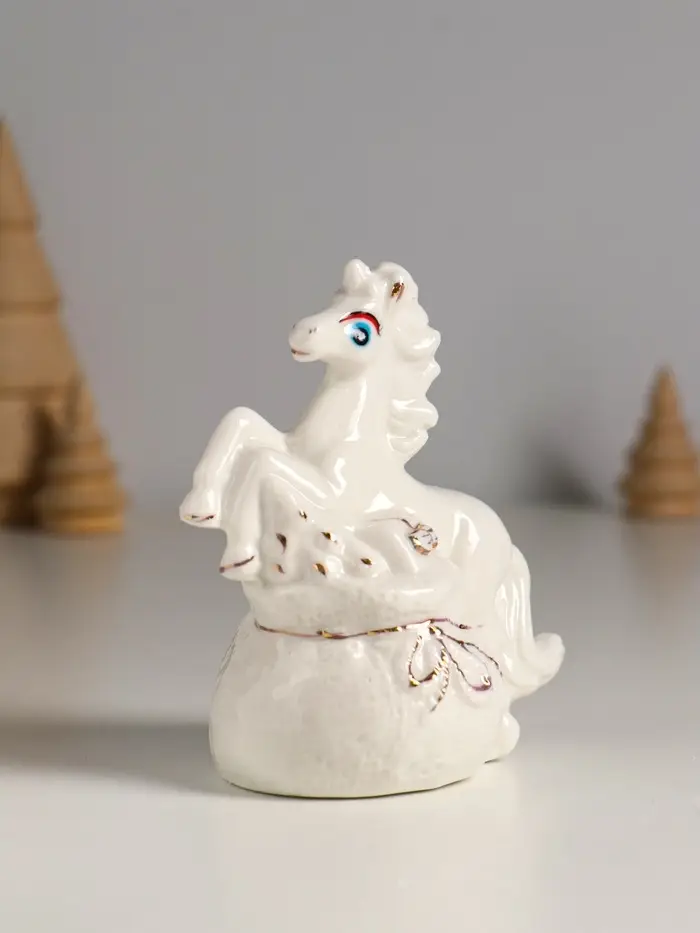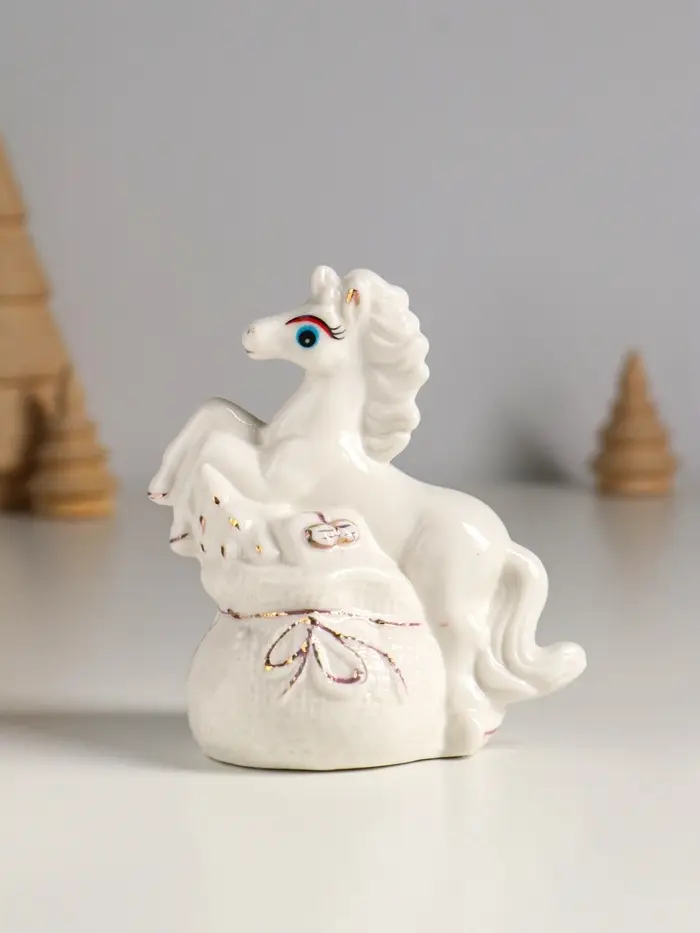 Копилка керамика "Лошадка с мешком" белый МИКС 9х5,5х10 см