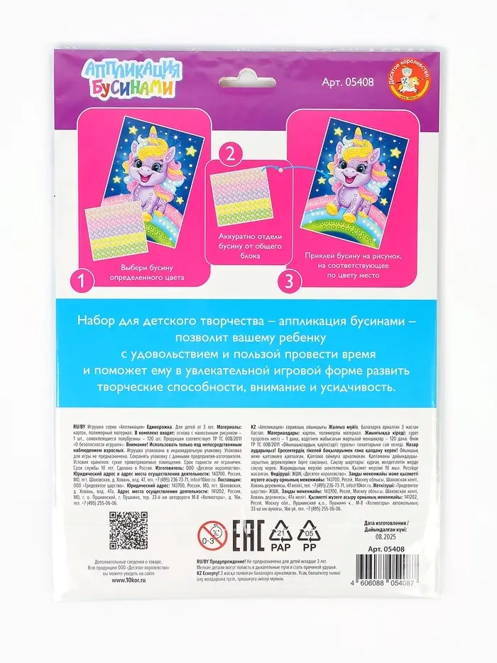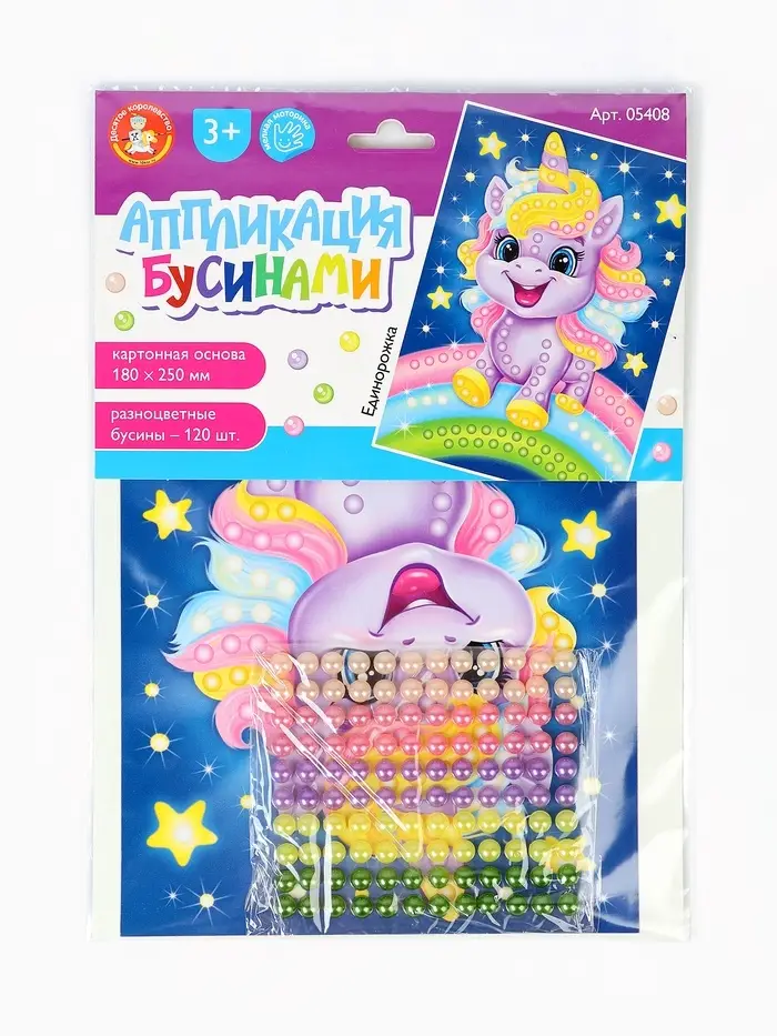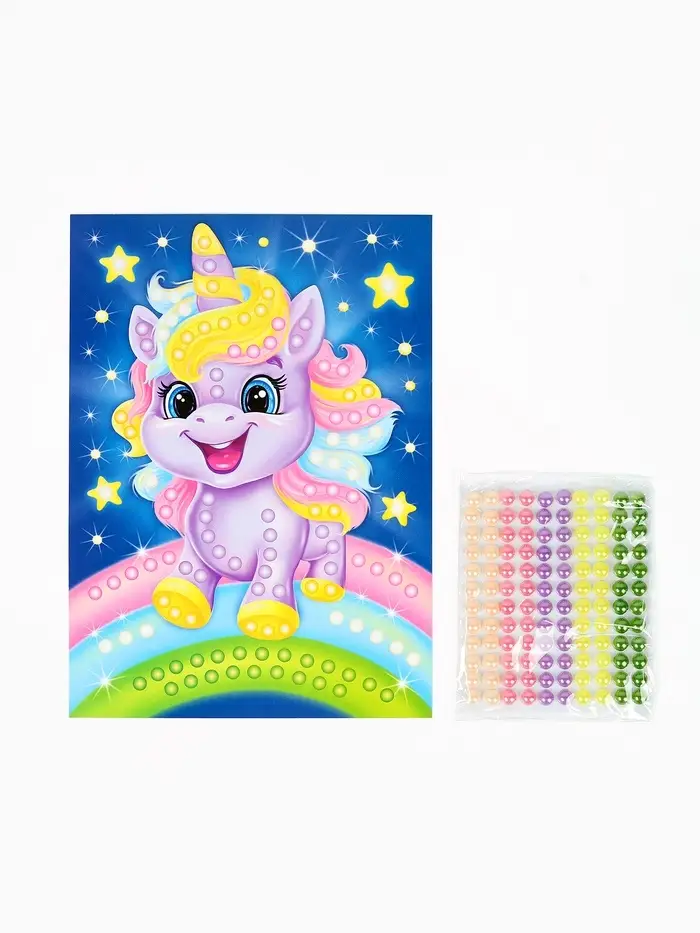 Набор для творчества. Аппликация бусинами "Единорожка" (180х250 мм, европодвес)