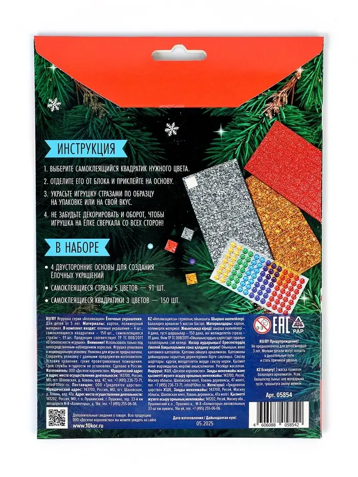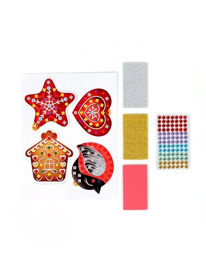 Набор для творчества. Аппликация "Ёлочные украшения" 4 шт (3 цв, 150 эл, стразы 91 шт) 2 конверт 109