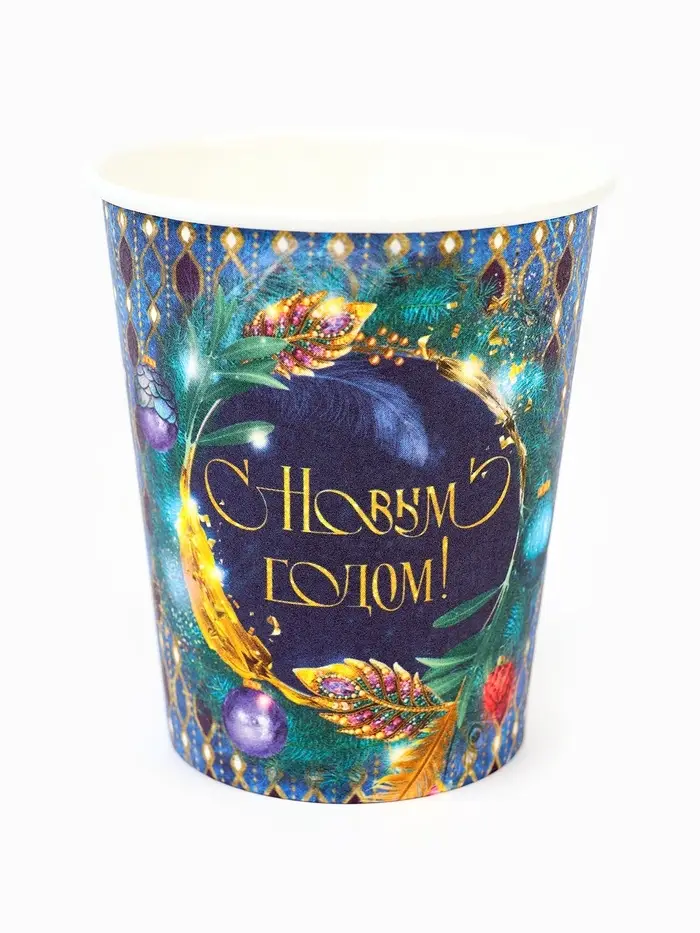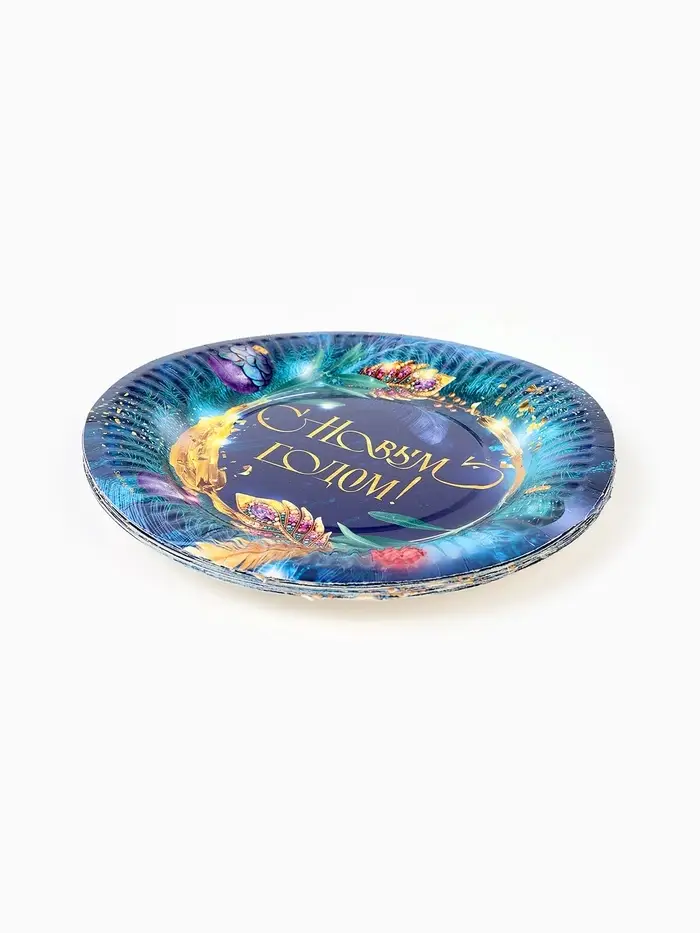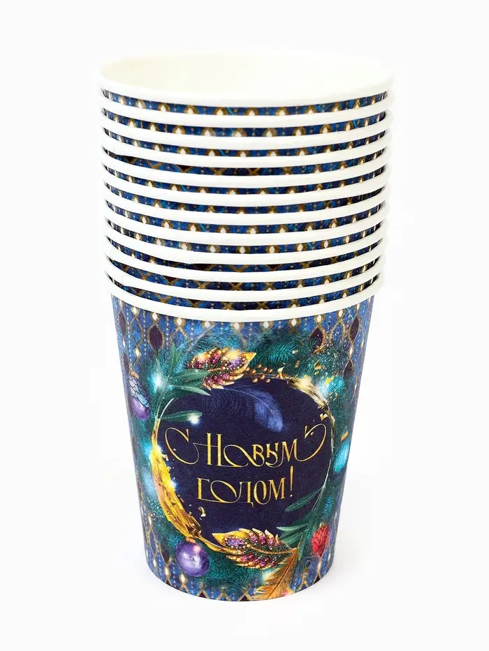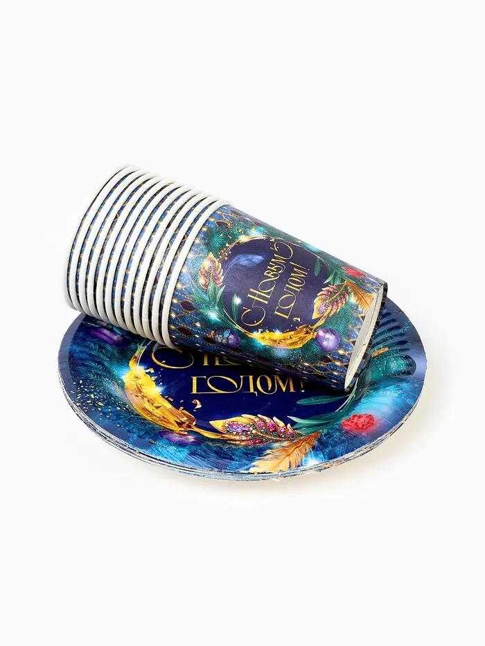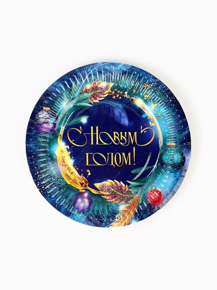 Набор бумажной посуды 12 персон "С Новым годом" праздничный венок ,