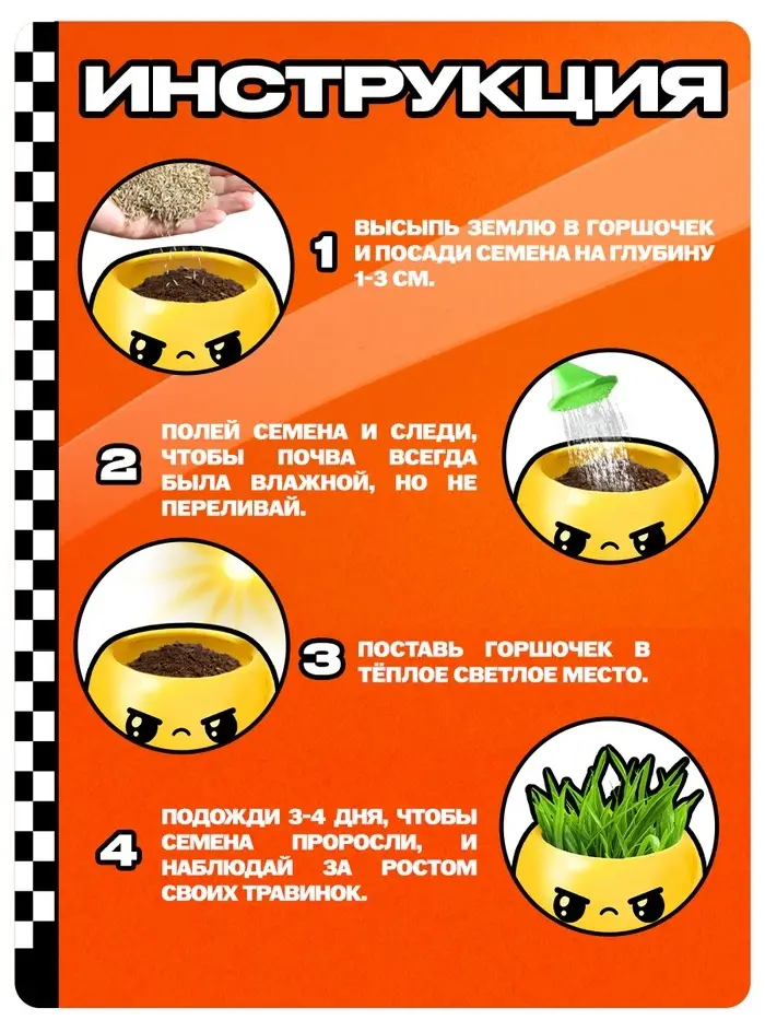 Подходит для детей от 3 лет, для занятий дома или в детских образовательных учреждениях. Горшочек с забавным дизайном станет украшением детской комнаты и добавит радости в процесс выращивания.
