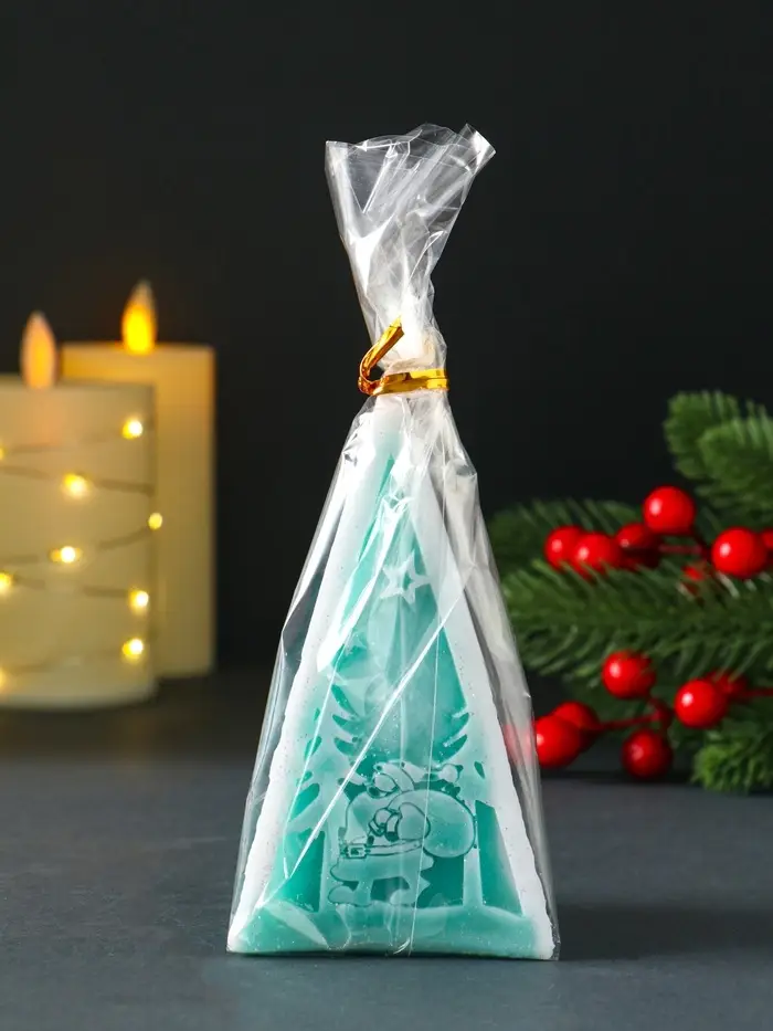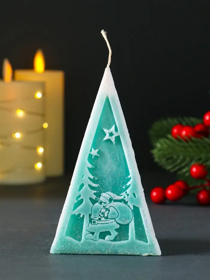 Свеча новогодняя пирамида Дед Мороз"6х6,5х12 cм, тиффани