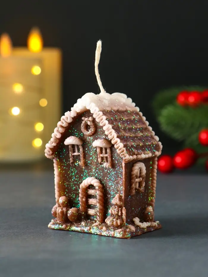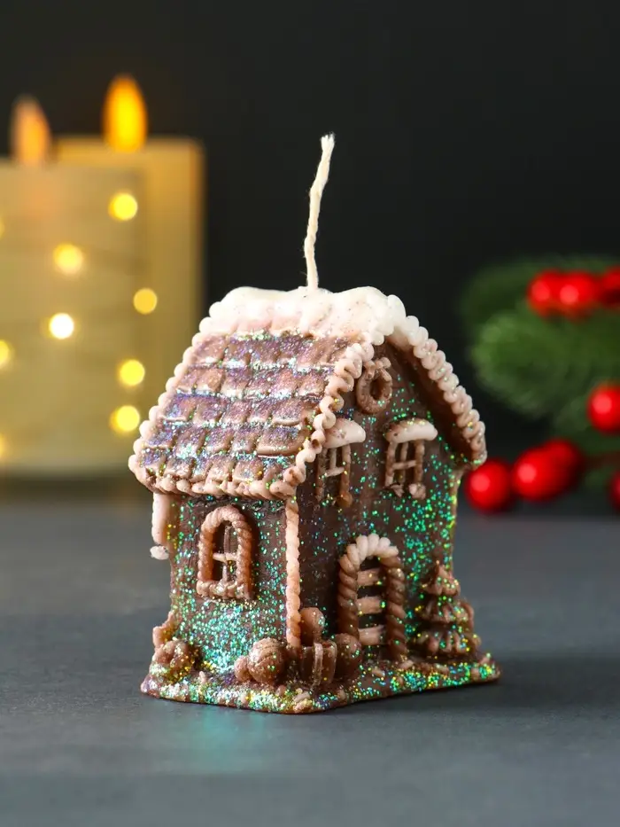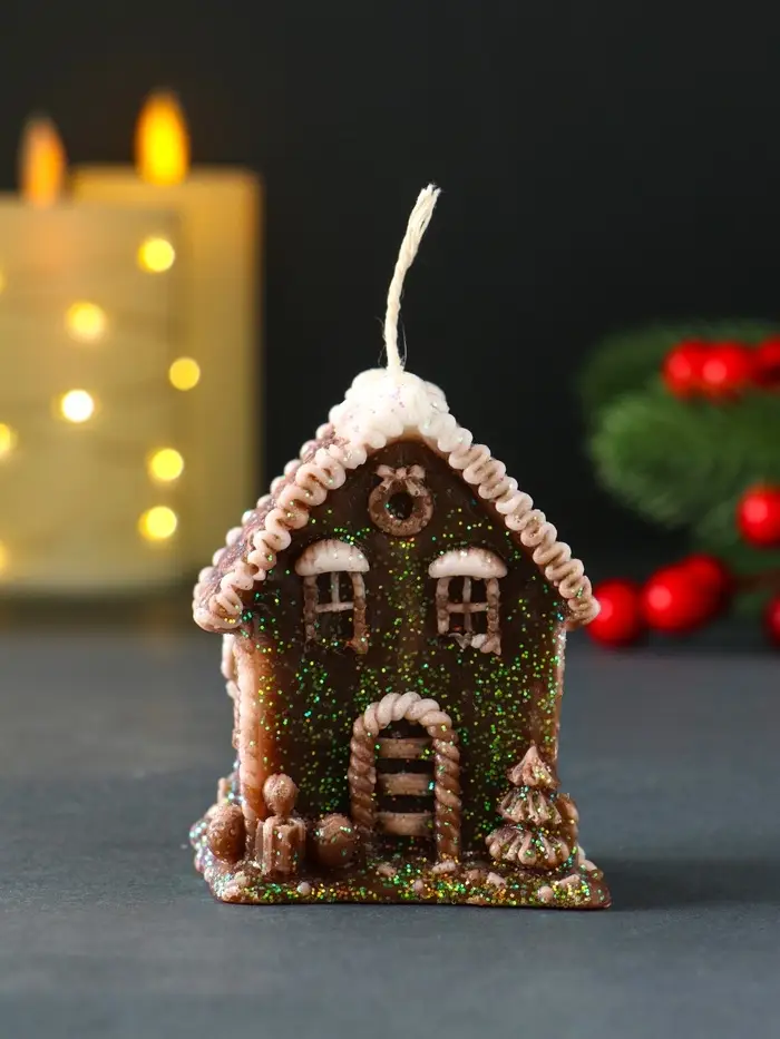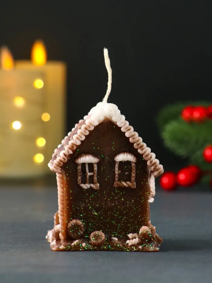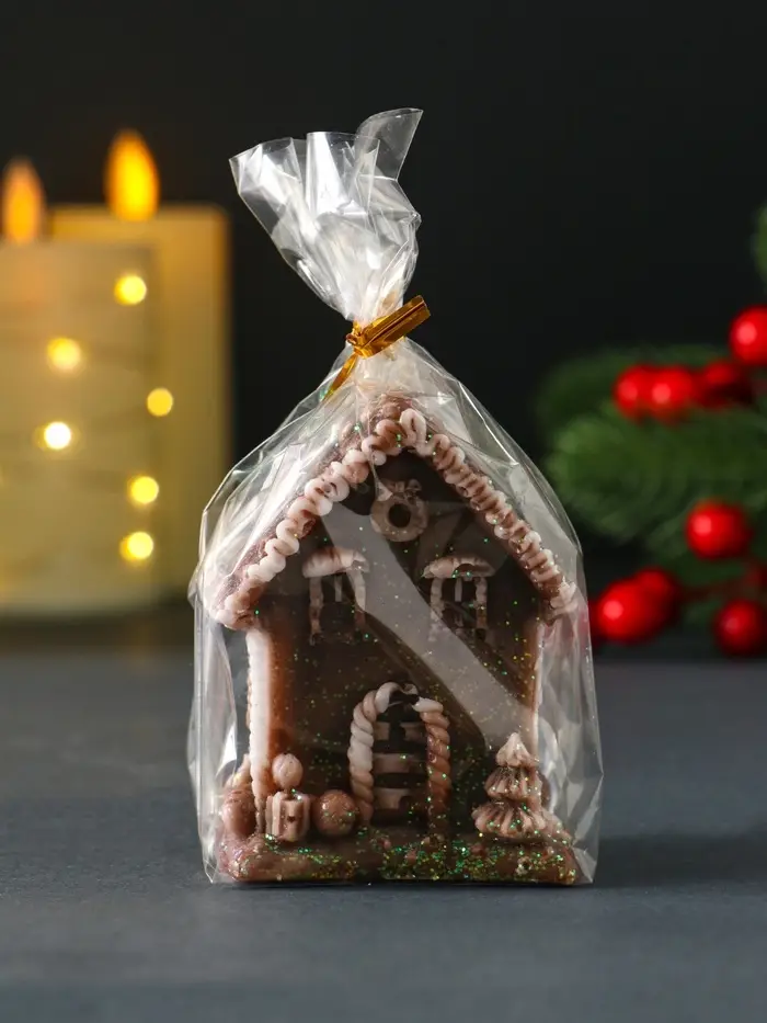 Свеча новогодняя "Домик с Ёлкой" 5,2х4х7 см, коричневый