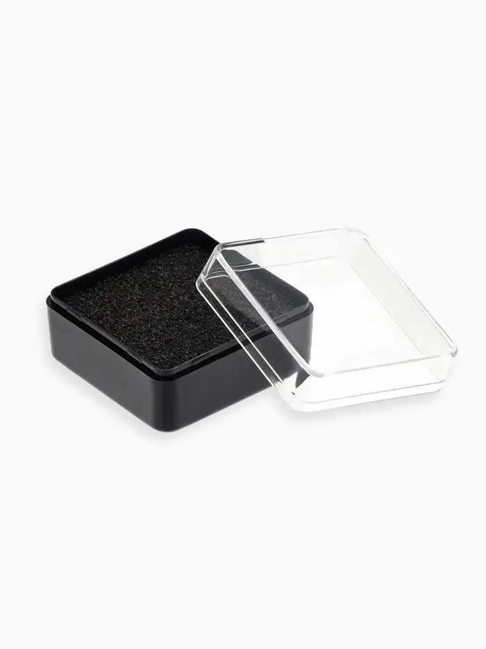 Футляр пластиковый для украшений и значка "Атрибутика", 4,1*4,1*2,4 см, прозрачная с чёрной вставкой