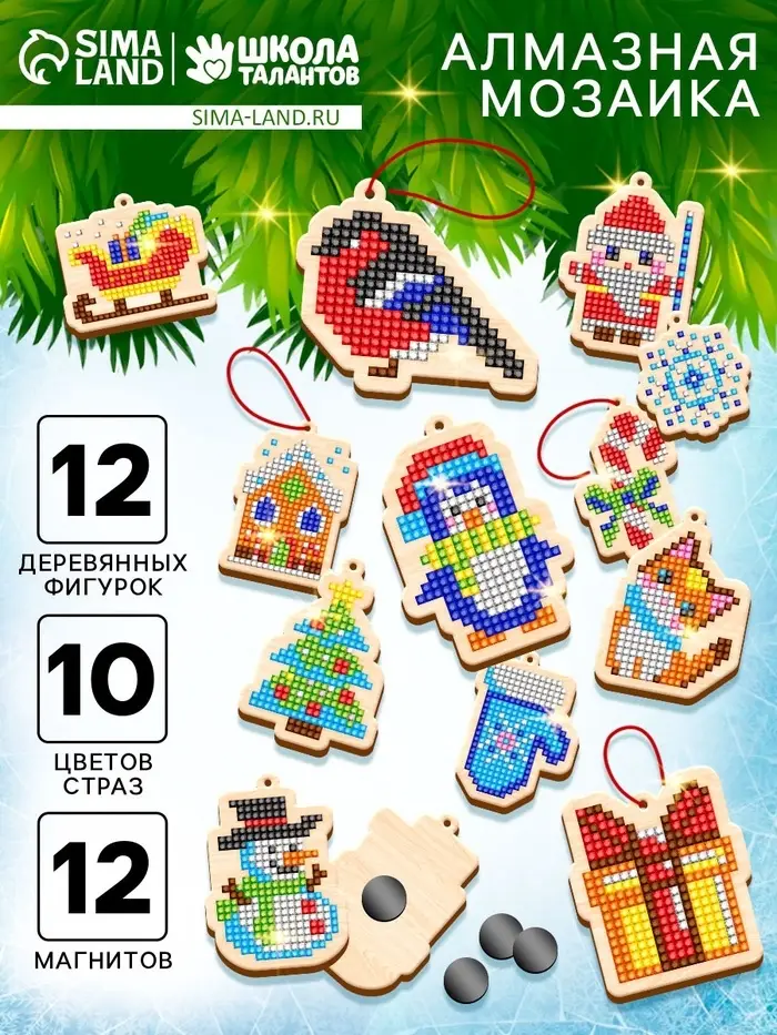 Алмазная мозаика «Новогодние чудеса» на подвеске 12 штук