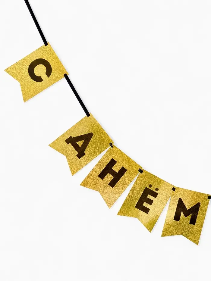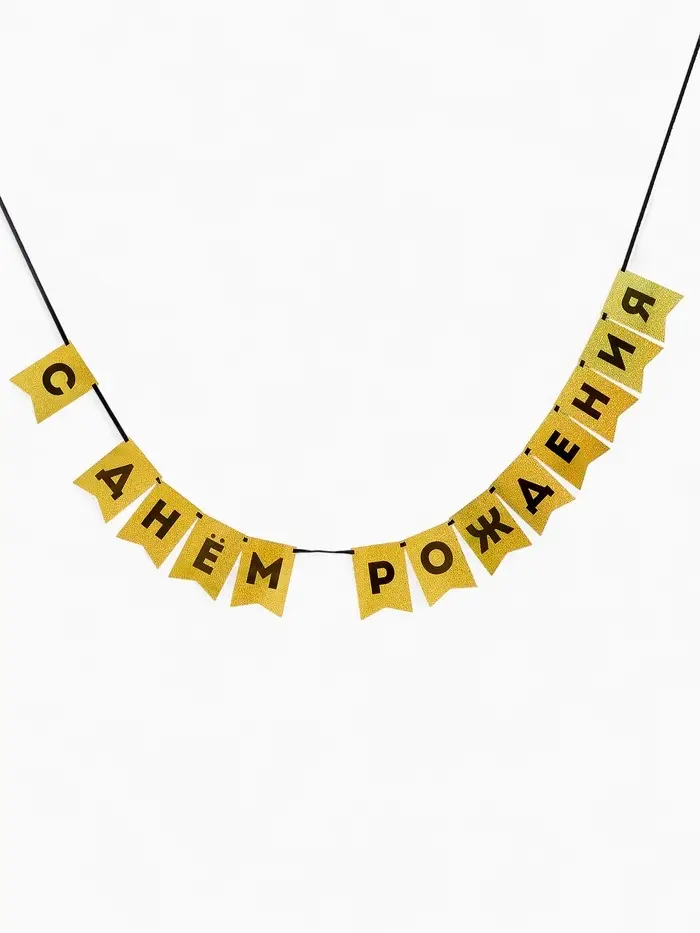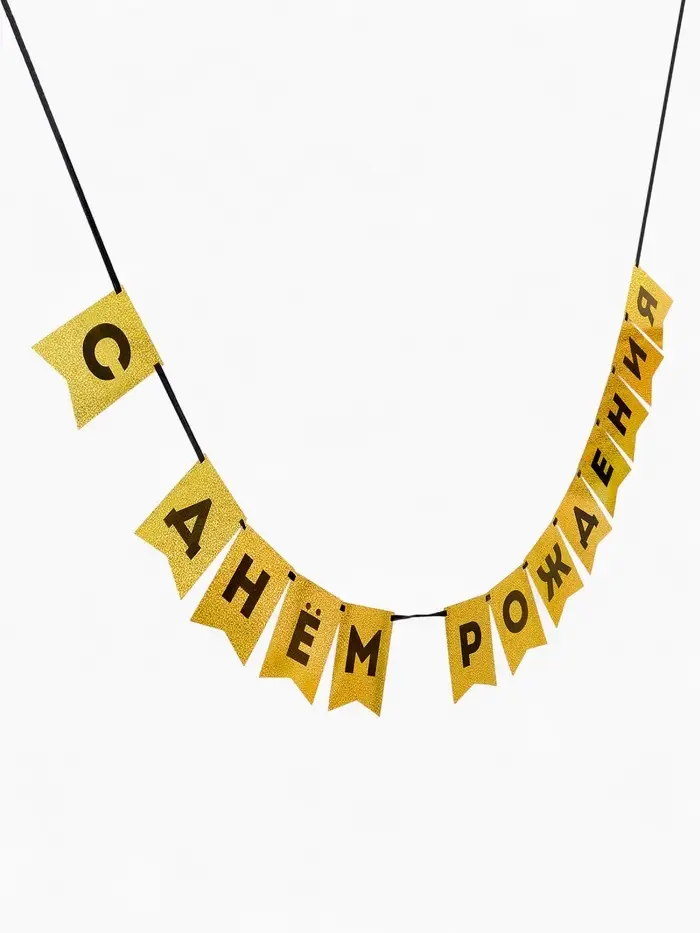 Гирлянда на ленте "С Днем Рождения" золотой картон с эффектом