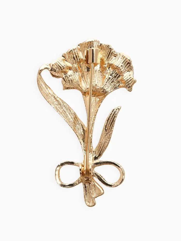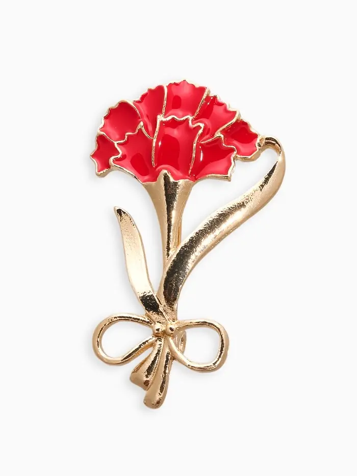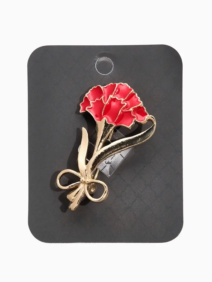 Брошь "Гвоздика" с лентой, цвет красный в золоте