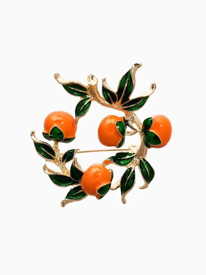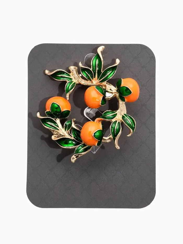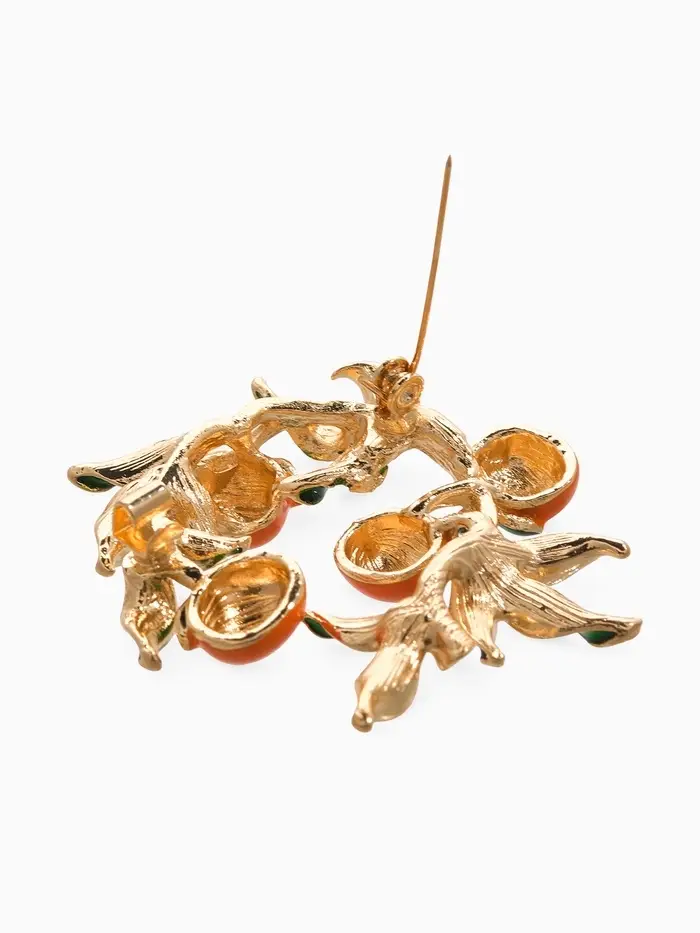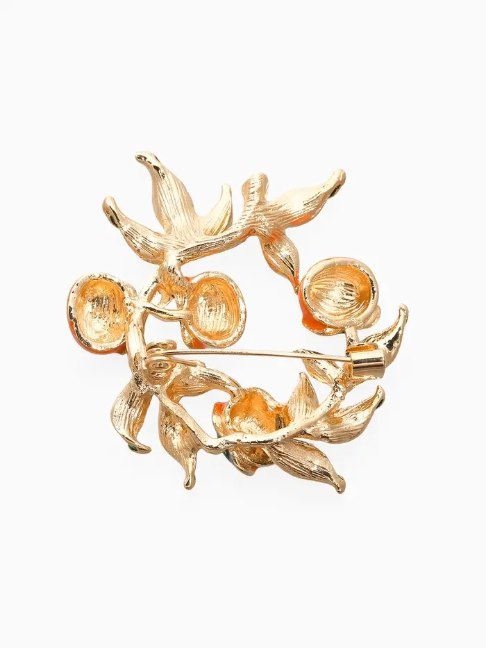 Брошь "Ветка апельсинов", цвет оранжево-зелёный в золоте