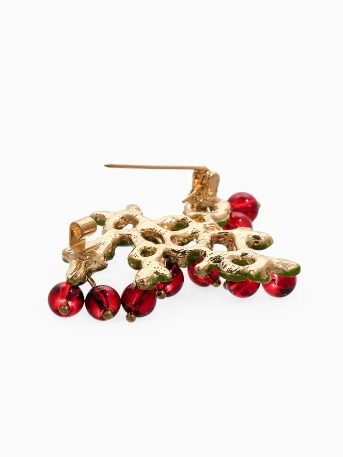 Брошь "Куст Вишни", цвет бордово-зелёный в золоте