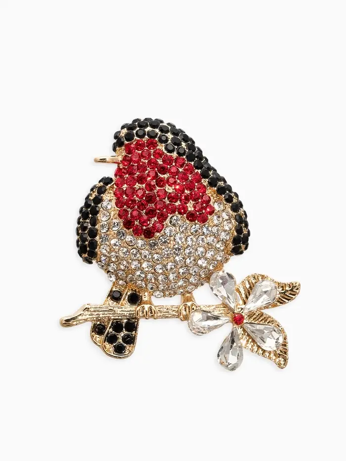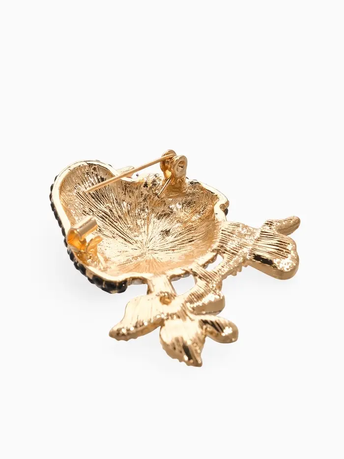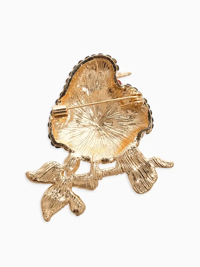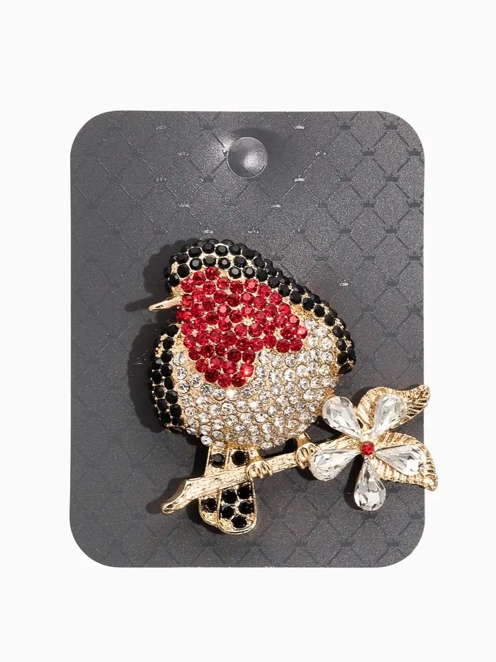 Брошь "Снегирь" в стразах, цвет чёрно-красный в золоте