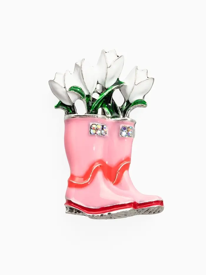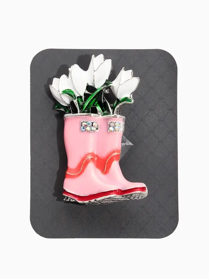Брошь "Цветы Тюльпанов в Сапогах", цвет бело-розовый в серебре