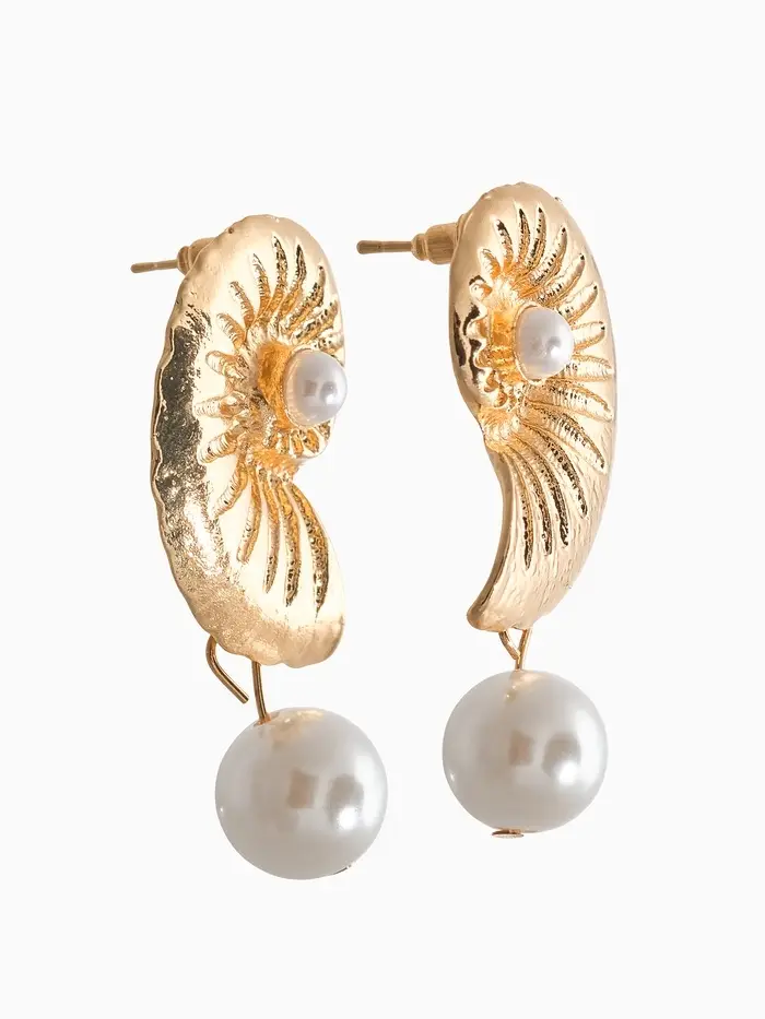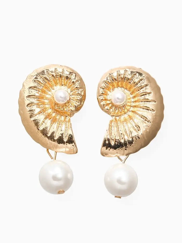 Серьги жемчуг "Ракушка", цвет белый в золоте