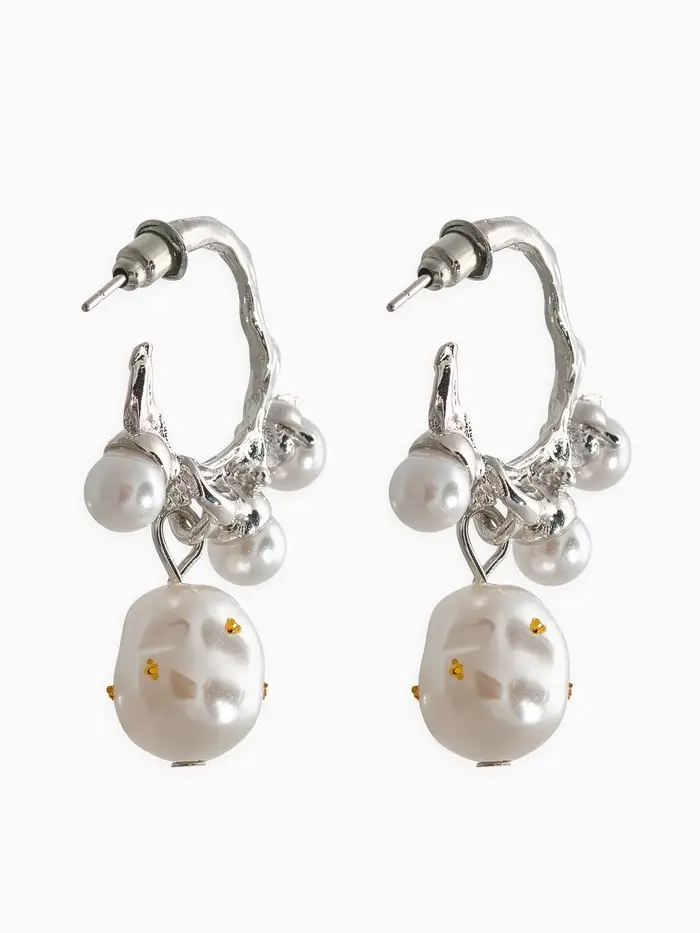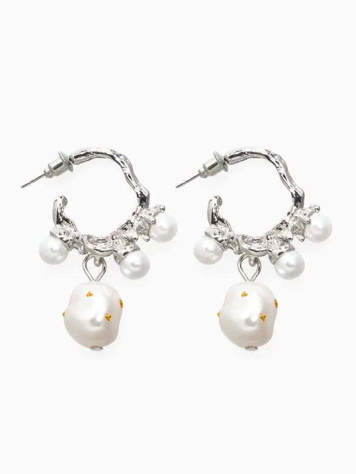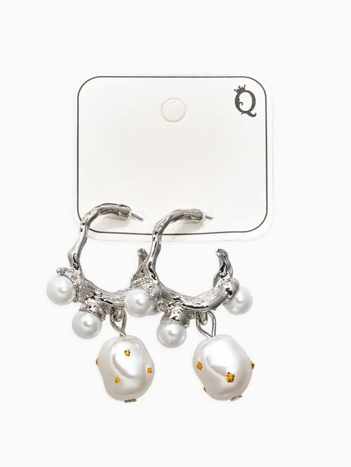 Серьги-кольца с жемчугом "Бусинки в крапинку", цвет белый в серебре