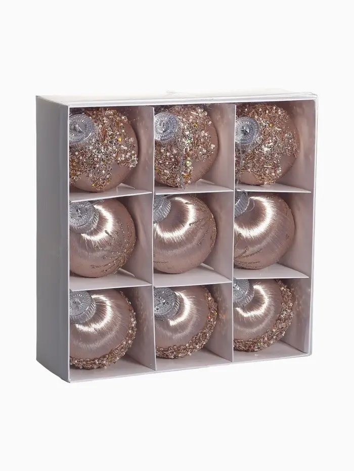 Набор шаров пластик d-8 см, 9 шт "Оллин" грация, золото