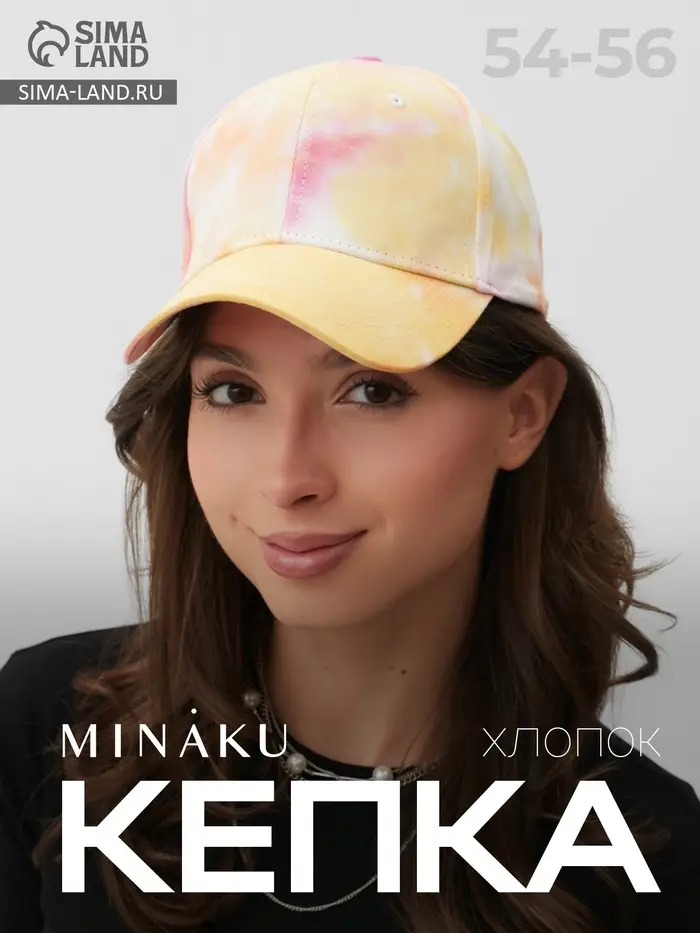 Кепка женская MINAKU Tie-dye, жёлтая, размер 54-56