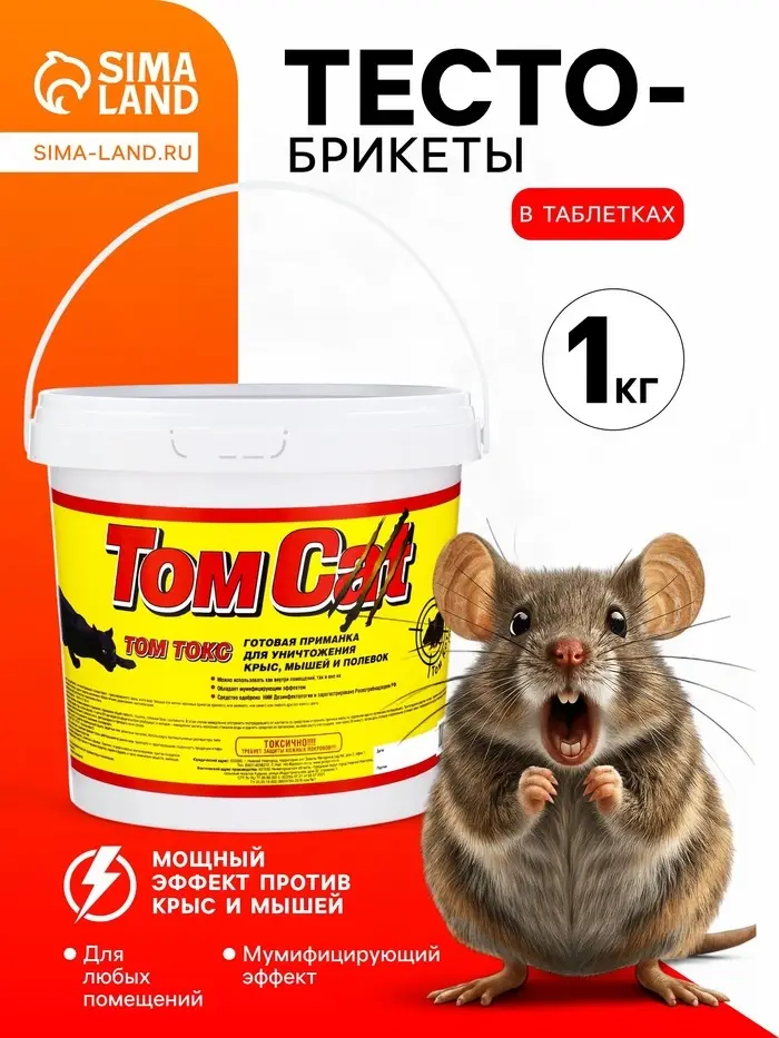 Тесто-брикеты от «Том Кот» в таблетках предлагают удобный и надёжный способ контроля популяции мышей и крыс в доме или на складе.
