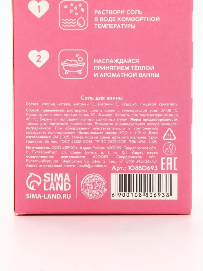 Соль для ванны «Чудеса рядом», аромат ванильный пряник, 300 г, URAL LAB