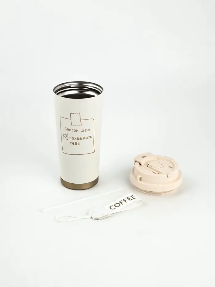 Термостакан с веревочкой "Список дел" белая, 500мл