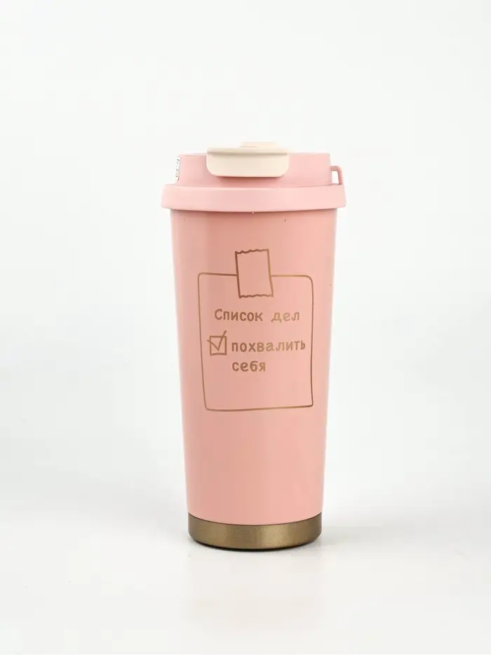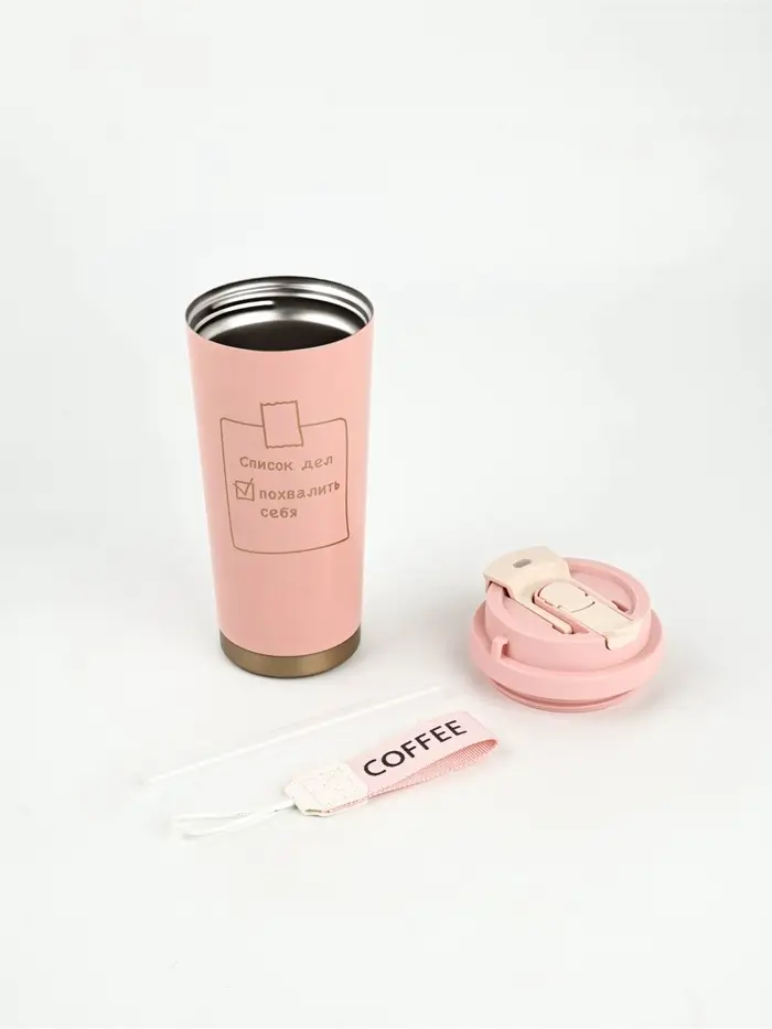 Термостакан с веревочкой "Список дел" розовая, 500мл