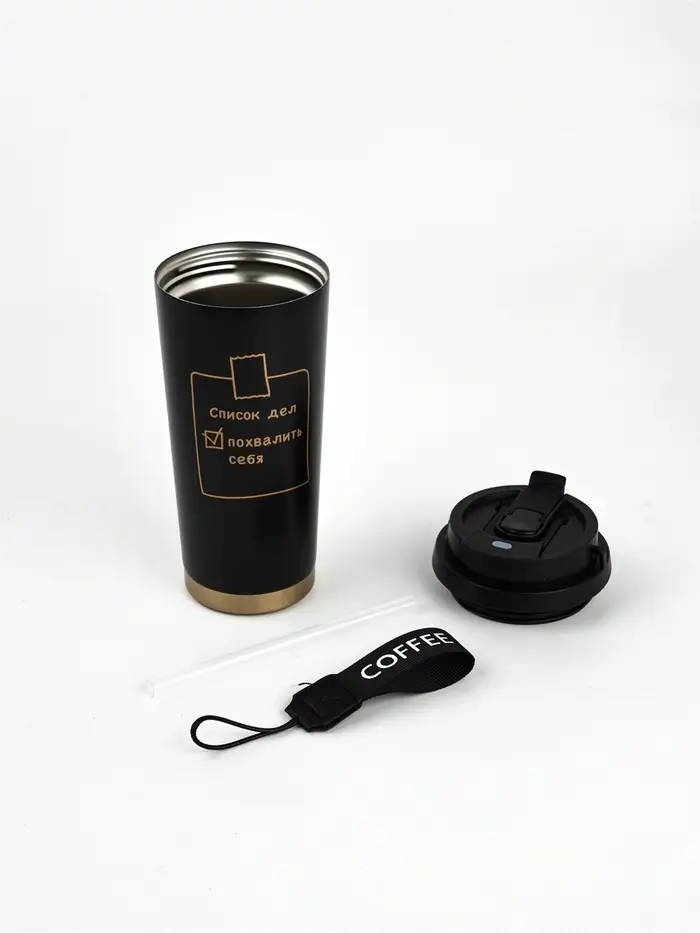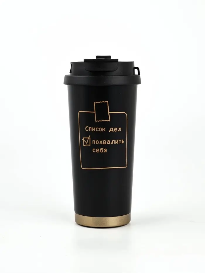 Термостакан с веревочкой "Список дел" черная, 500мл