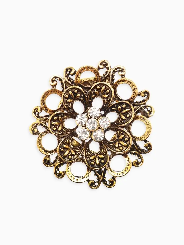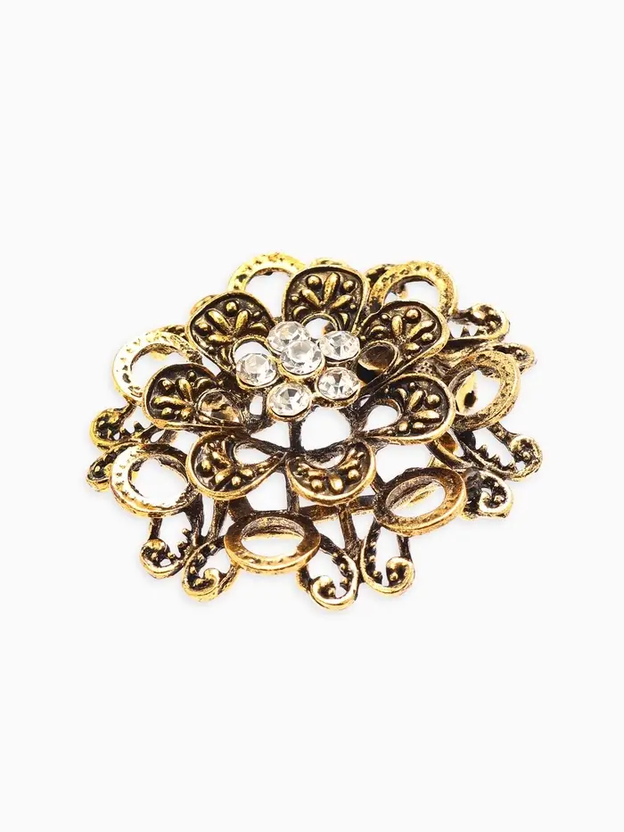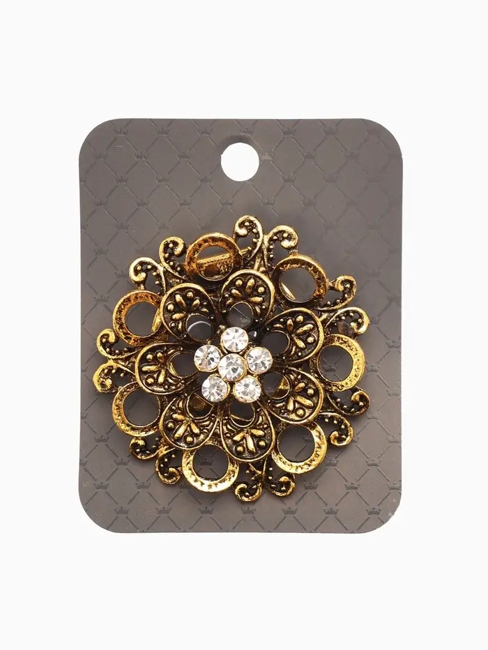 Зажим для платка "Цветок астры", цвет белый в чернёном золоте