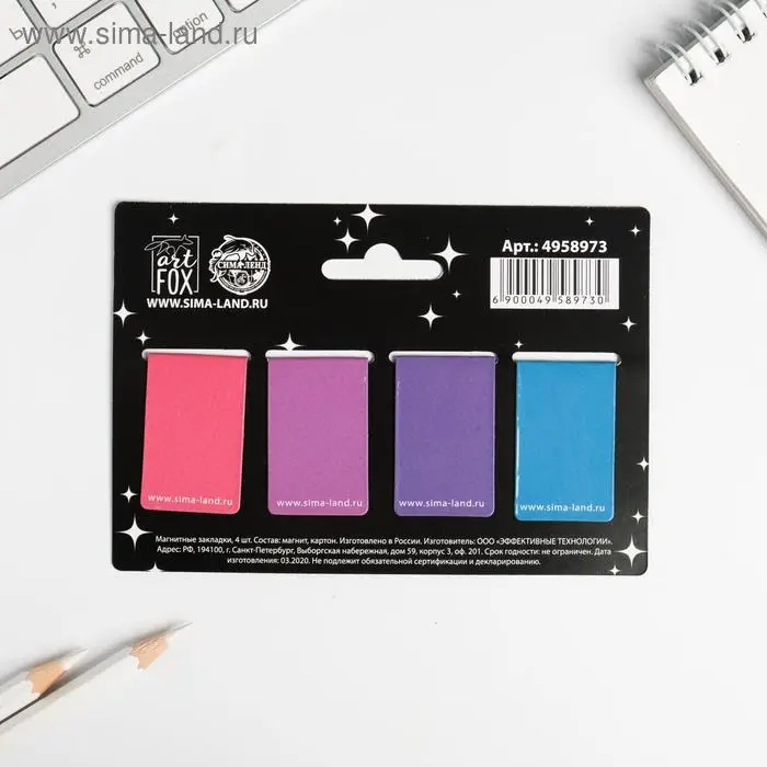 Закладки магнитные для книг, 4 шт «Единорог»