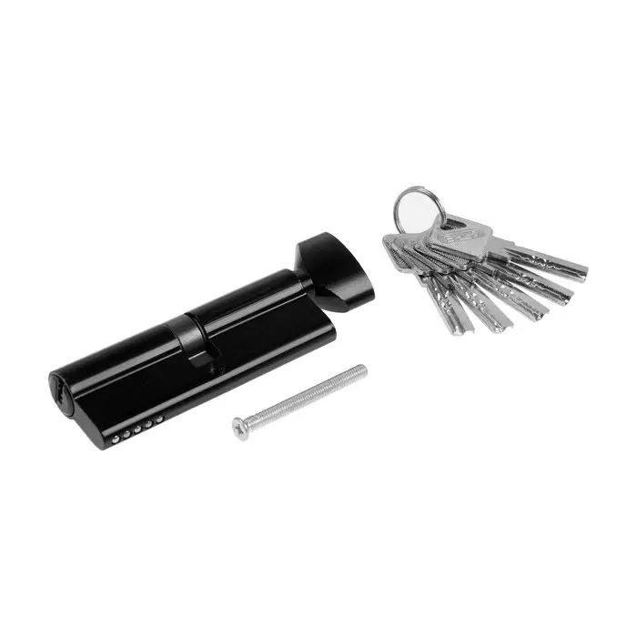 Цилиндровый механизм, 90 мм, с вертушкой, перфорированный ключ, 5 ключей, черный
