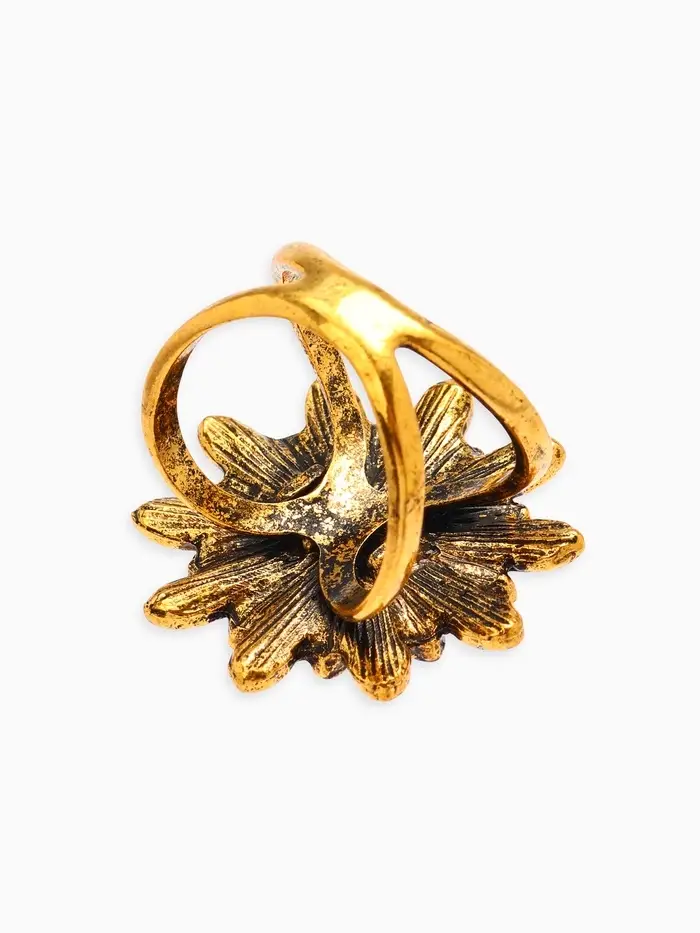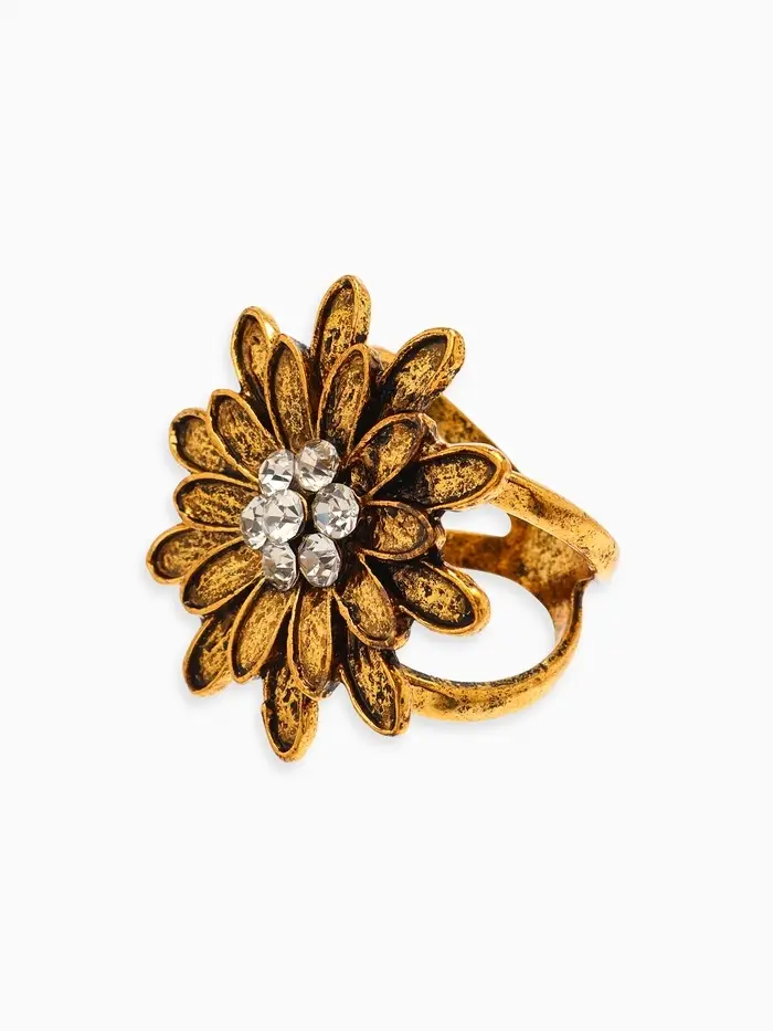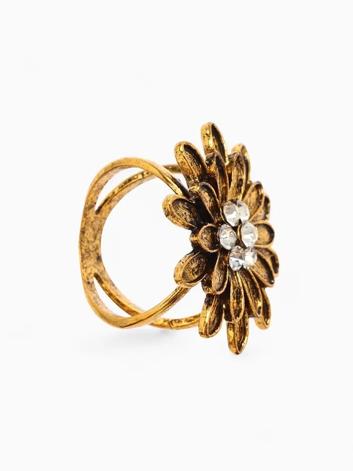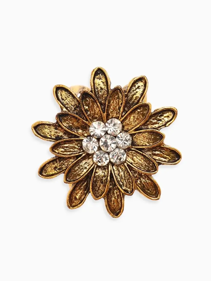 Кольцо для платка "Цветок Хризантема", цвет белый в чернёном золоте