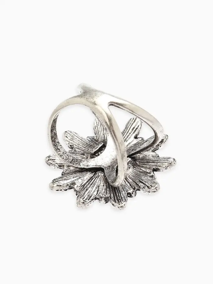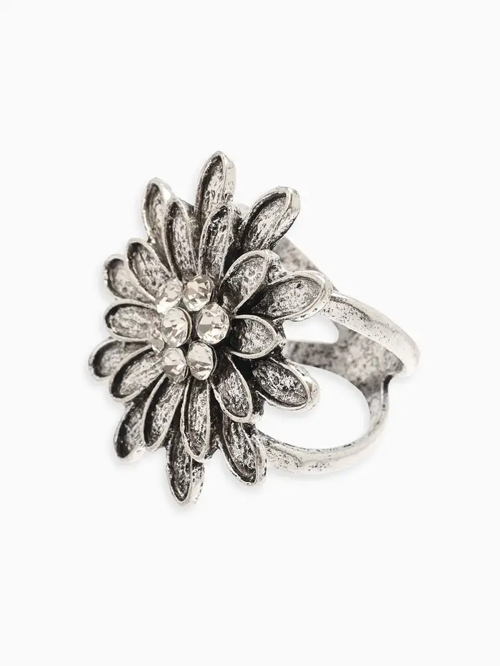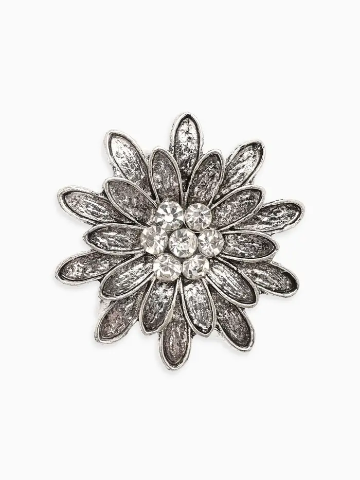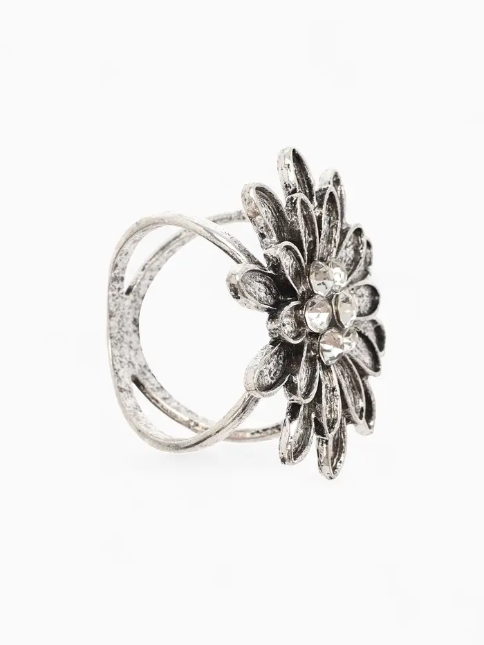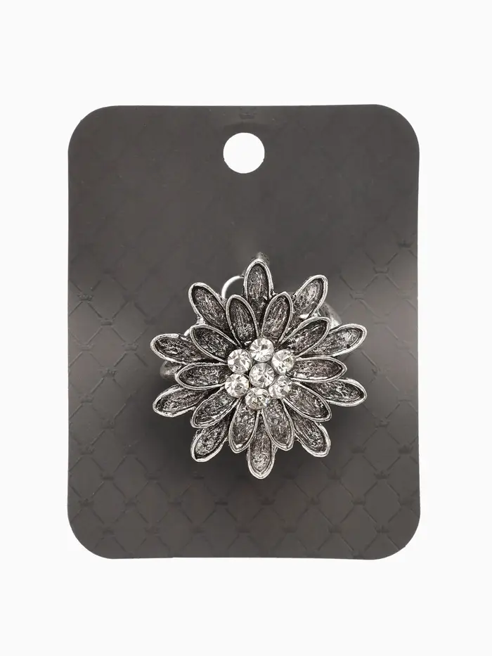 Кольцо для платка "Цветок Хризантема", цвет белый в чернёном серебре