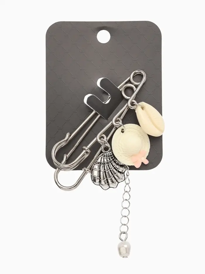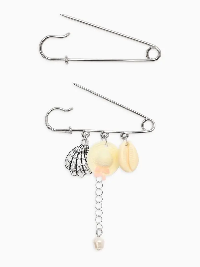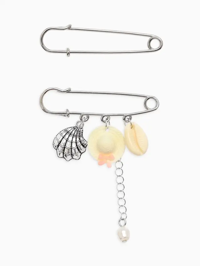 Булавка (набор 2шт) "Пляж" L=7см, цвет белый в серебре