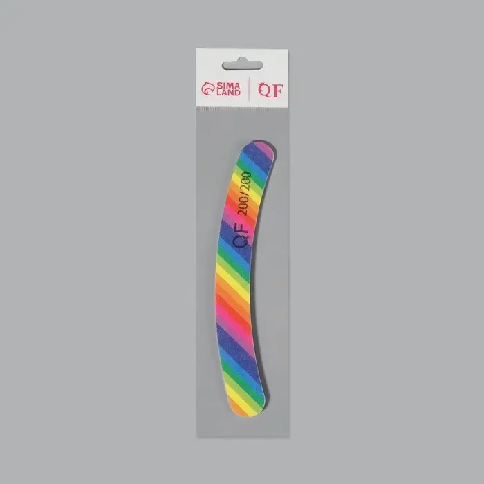 Пилка для ногтей «Радуга», бумеранг, 200/200 грит, 18 см, разноцветная