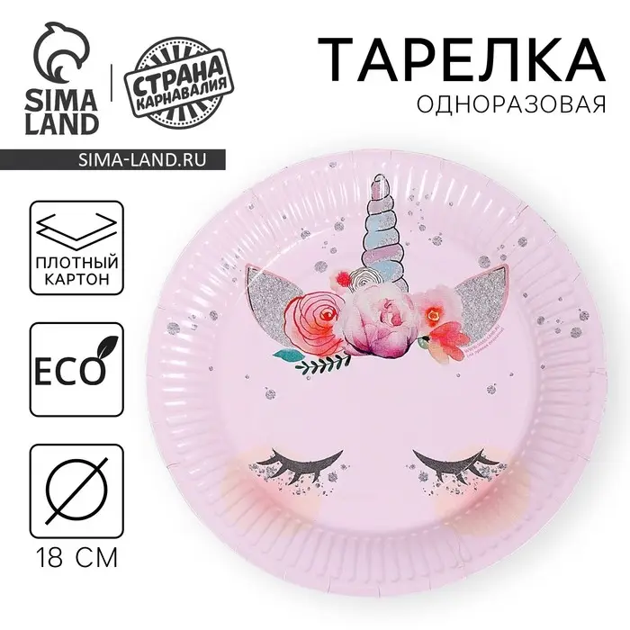 Тарелка одноразовая бумажная «Единорог», 18 см