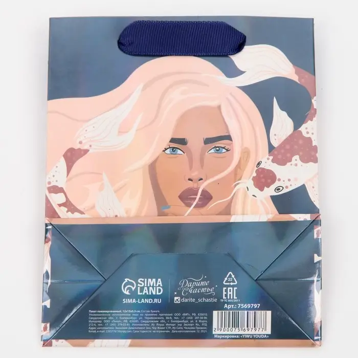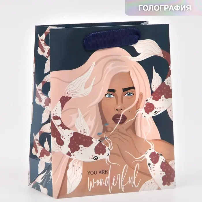 Пакет подарочный ламинированный, упаковка, «Ты замечательная», радужная голография, S 12 х 15 х 5.5 см