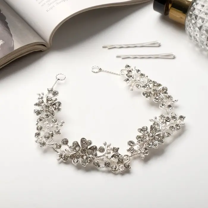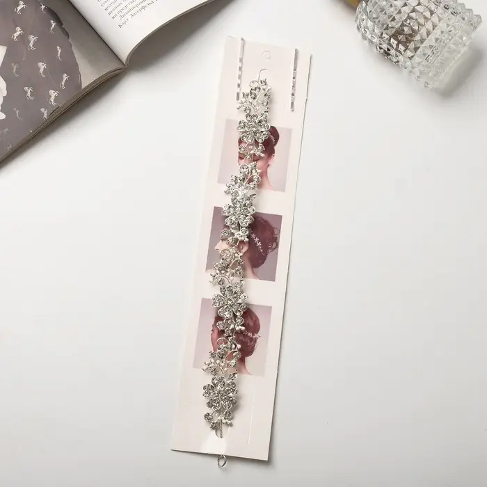 Аксессуар для волос «Долорес», цветы веточки капельки, 23.5×2 см, серебро