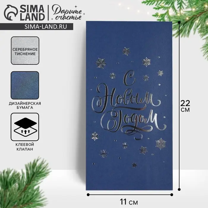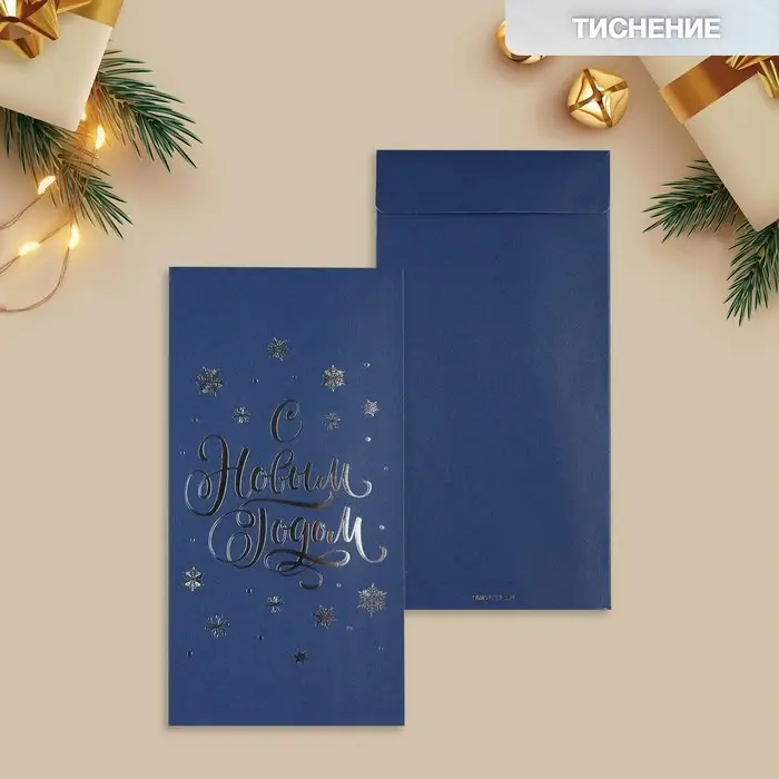 Конверт для денег, «С Новым годом», тиснение, дизайнерская бумага, 11 х 22 см