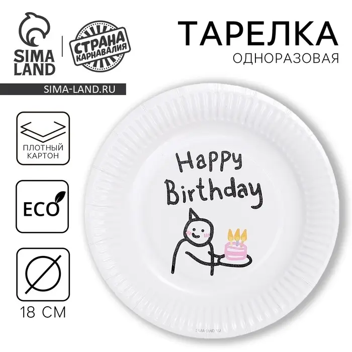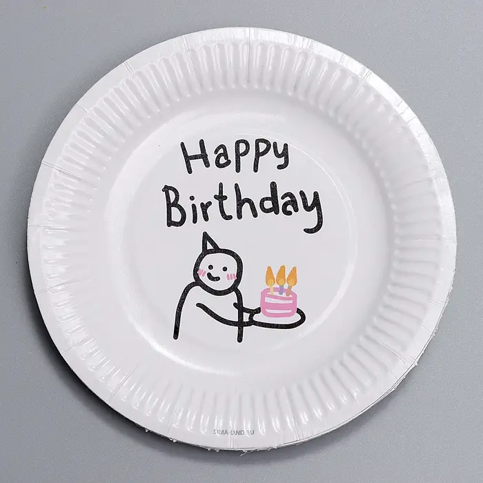 Тарелка одноразовая бумажная «С днём рождения», 18 см