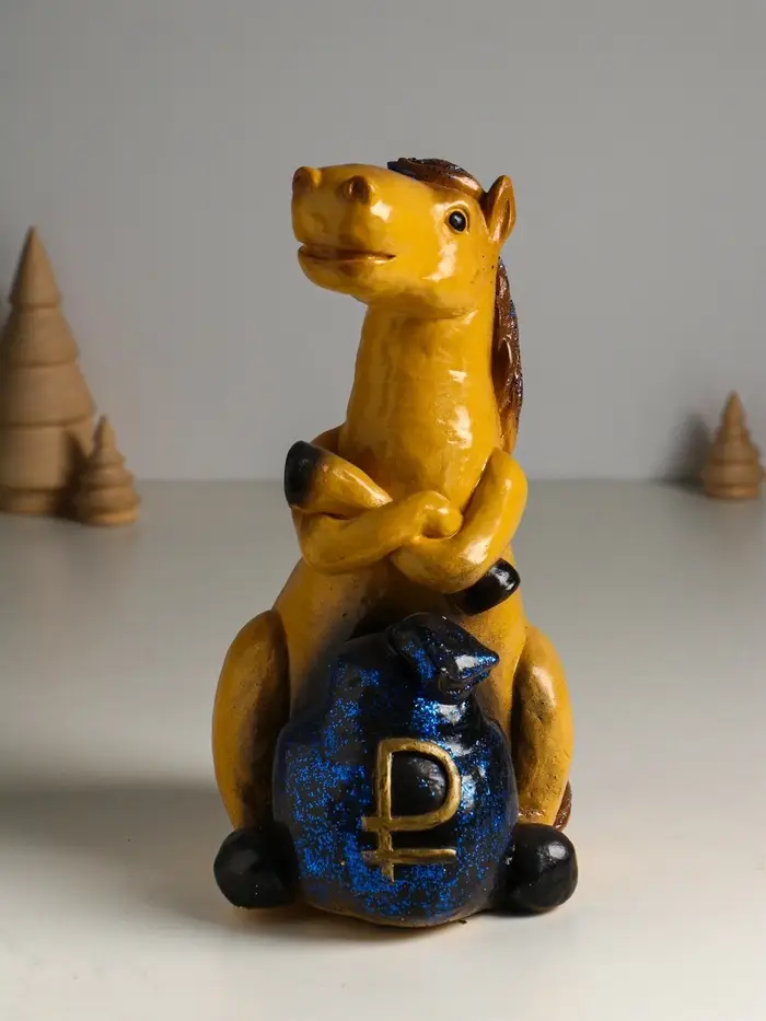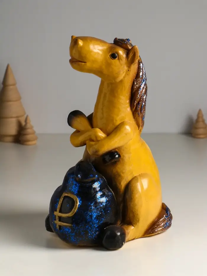 Копилка "Лошадь с мешком" 12х17х24 см, коричневый