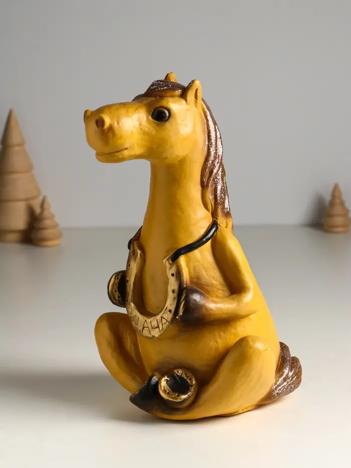Копилка "Лошадь с подковой" 15х15х25 см, коричневый