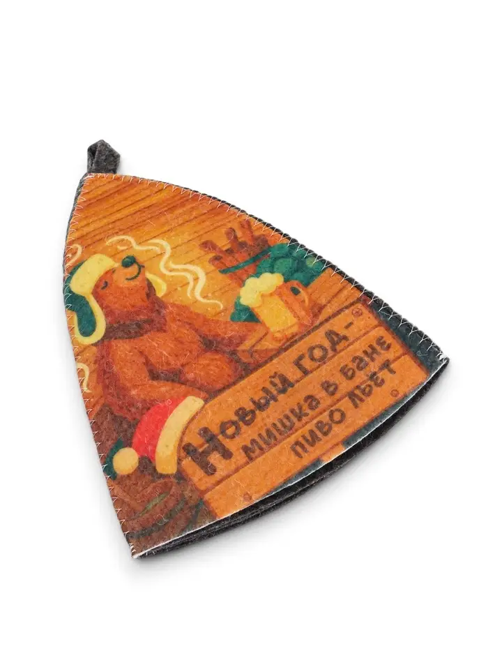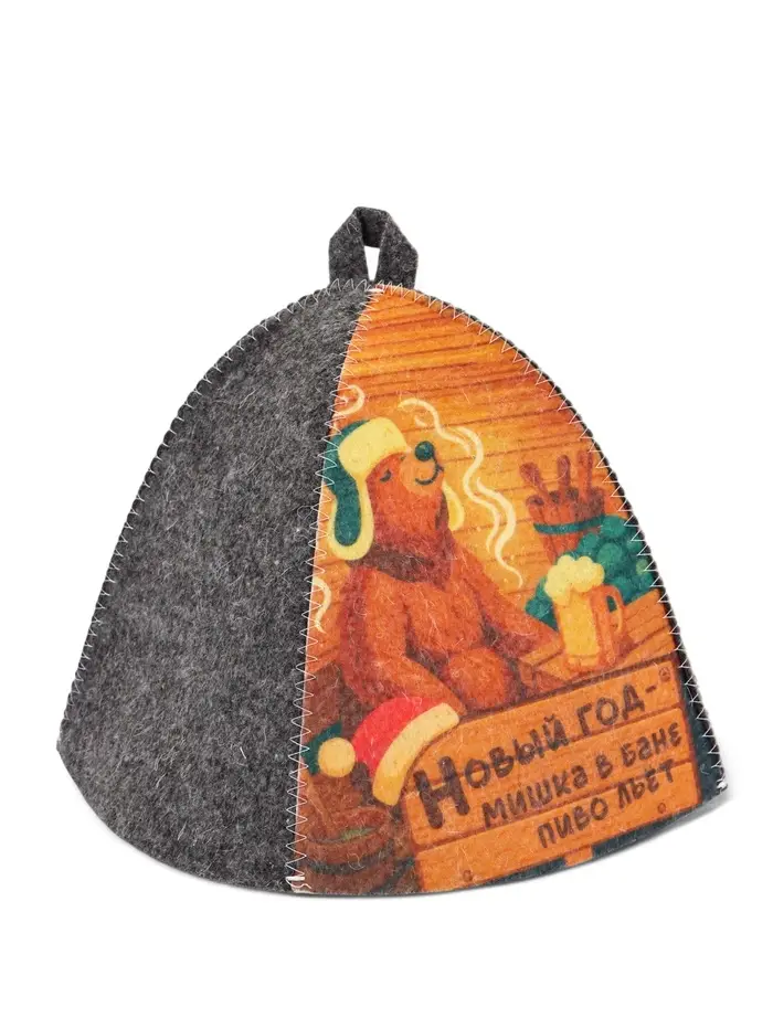 Шапка для бани с принтом "Мишка в бане. Новый год", темная